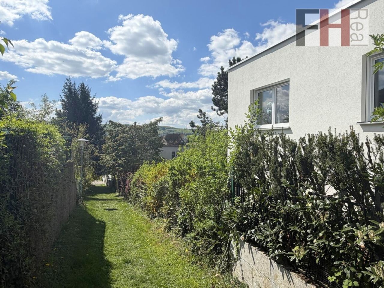 Eine schöne Holztreppe führt Sie vom Vorraum aus in die untere Ebene. Der vordere Teil Richtung Süden bietet nochmals großzügige 2 Zimmer, welche jeweils vom Flur aus begehbar sind. Der gesamten südlich gelegenen Hausfront ist nicht nur eine ca. 45m² große Terrasse vorgelagert, die man sowohl von diesen beiden Räumen als auch vom Gang in der Mitte aus betreten kann, sondern auch der große, terrassiert angelegte Garten. Der Rasen wurde frisch gesetzt, einer Verwirklichung Ihrer Gartenträume zum grünen Paradies steht somit nichts im Wege.