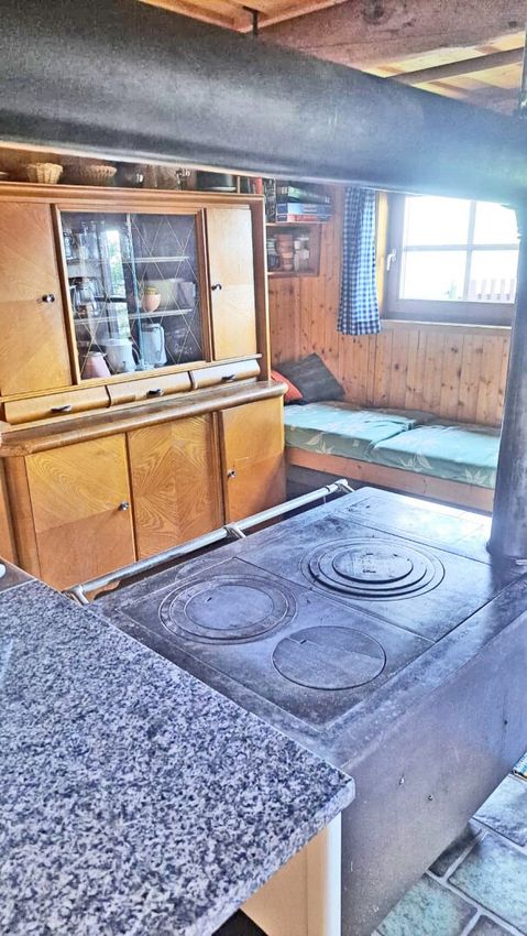 Die Hütte ist original und rudimentär für das einfache Bergleben gedacht. Geheizt wird mit Holz. Über eine PV-Anlage wäre die Installation einer Infrarotheizung möglich.