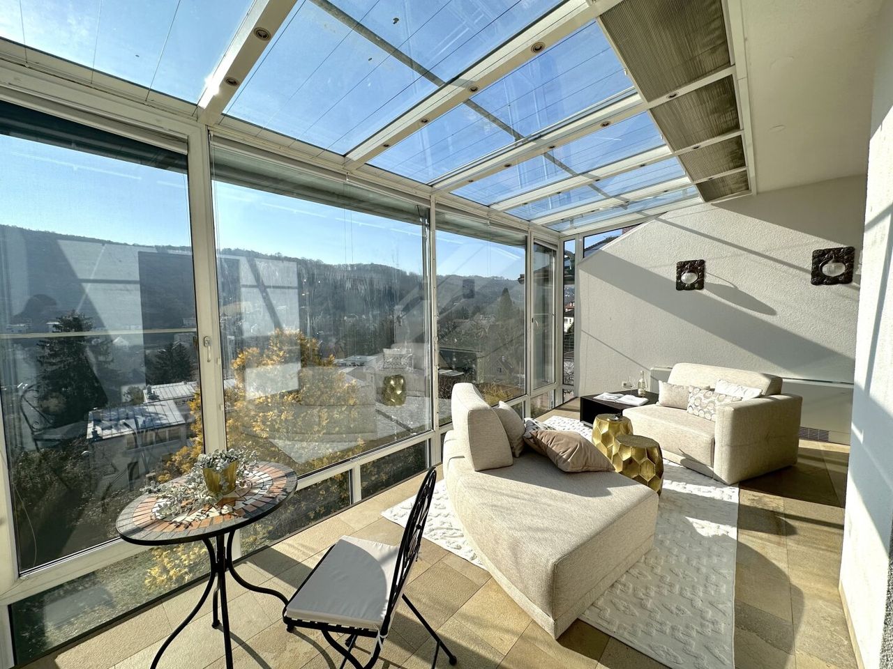 Wintergarten und sonnige Terrasse mit Weitblick