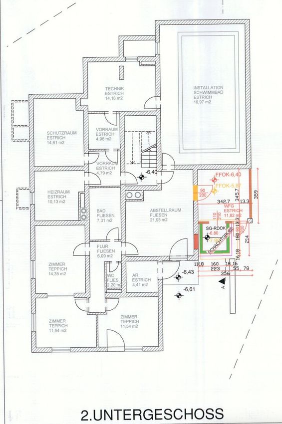 Diverse Technikräume, Heizraum, Schutzraums sowie Wirtschaftsraum