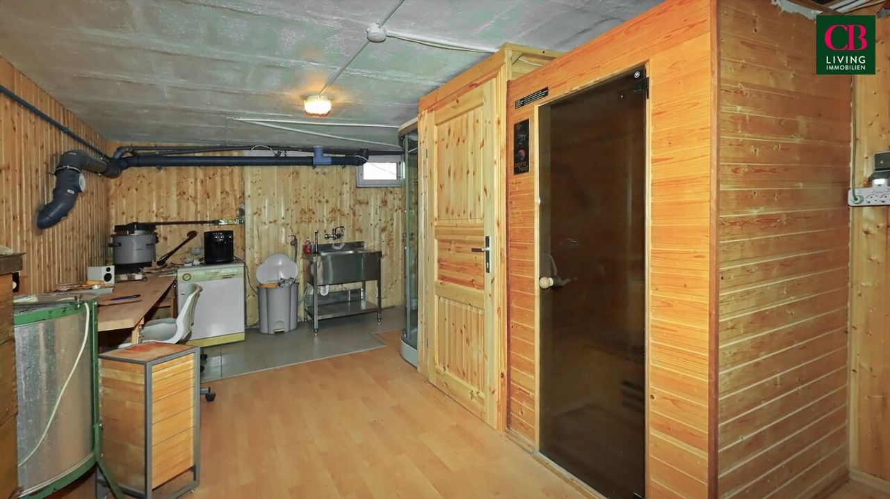 Im Keller wurde eine Sauna, eine Dusche und ein WC installiert. Das Zimmer im Untergeschoß ist sowohl als Schlafzimmer als auch als Gästebereich bestens nutzbar.