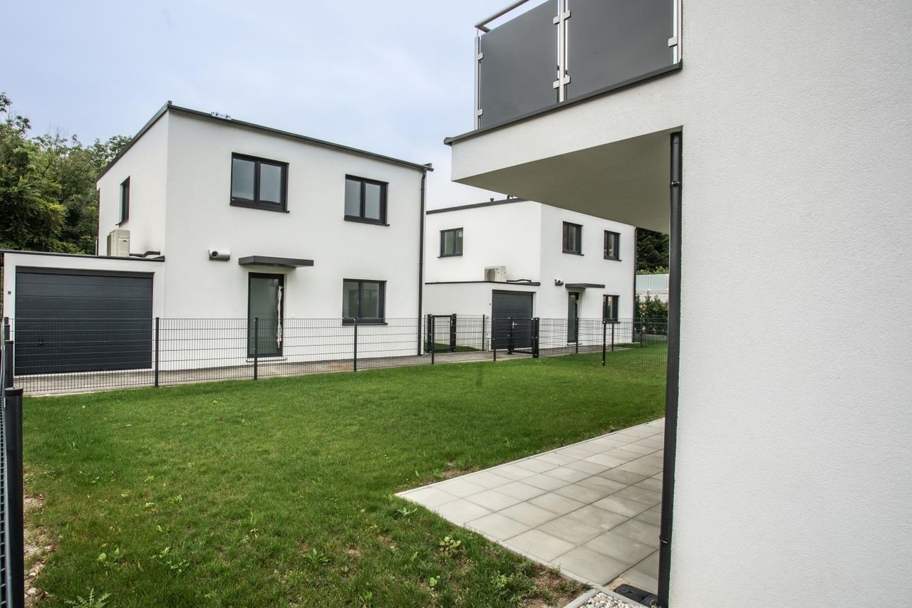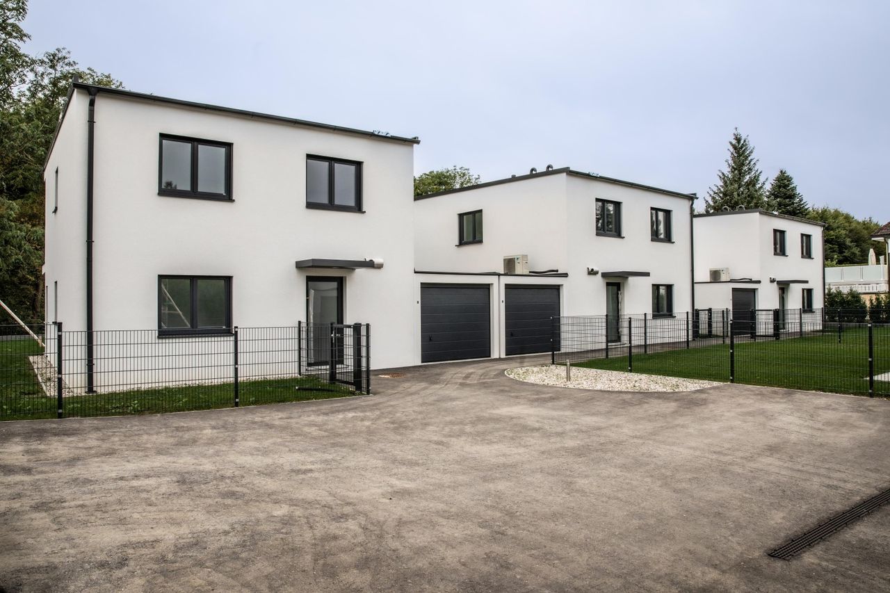 Luxeriöses Wohnen im Wienerwald - Mietkauf Erstbezug! In unmittelbarer Nähe zu Wien, oberhalb von Klosterneuburg errichten wir 5 exklusive, ökologische, top moderne Einfamilienhäuser auf einem wunderschönen, sonnigen Grundstück, direkt angrenzend an den Wienerwald. Das Haus besticht nicht nur durch die großzügige Architektur, sondern auch durch die einzigartige Waldrandlage - hier erwartet Sie höchste Lebens- und Wohnqualität. Sonnendurchflutete Räume, großflächige Fensterfronten mit Beschattungsmöglichkeiten, eine Top Ausstattung sowie viel Privatsphäre bieten ein außergewöhnliches Ambiente und verleihen dieser modernen Liegenschaft ihre Einzigartigkeit. Jedem Haus zugehörig ist ein wunderschöner Garten mit großzügigem Abstellraum und 2 PKW-Stellplätze. Das Haus steht zur unbefristeten Miete mit einer...