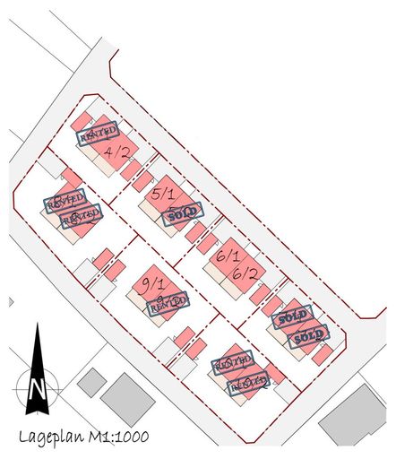 • 6 schlüsselfertige Doppelhaushälften (ohne Küche)