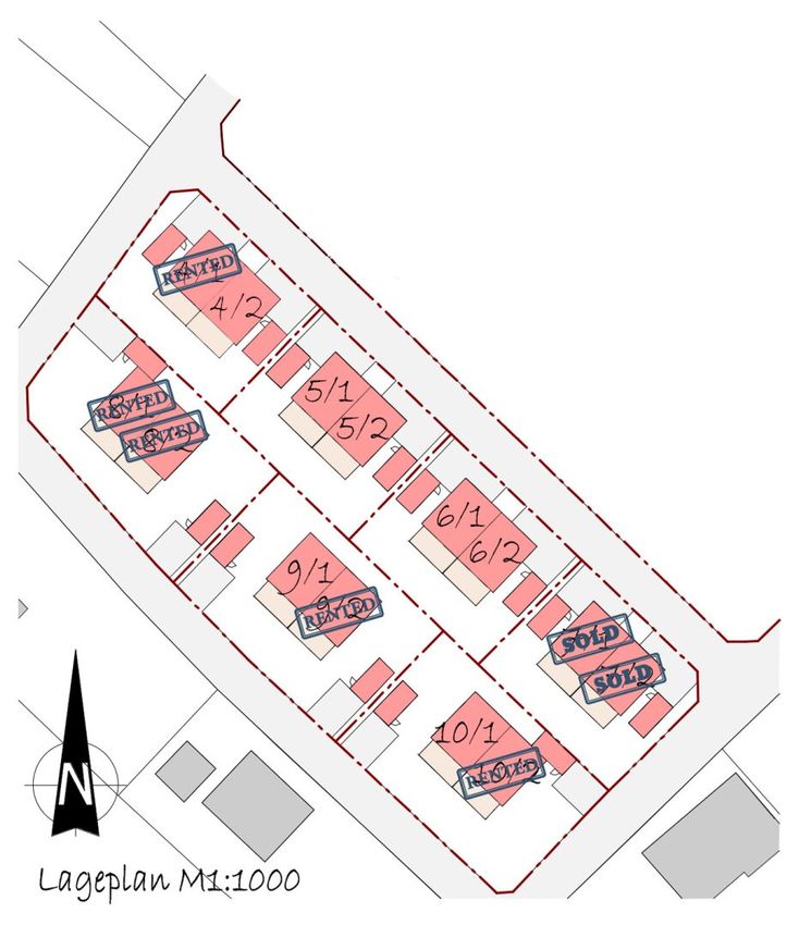• 6 schlüsselfertige Doppelhaushälften (ohne Küche)
