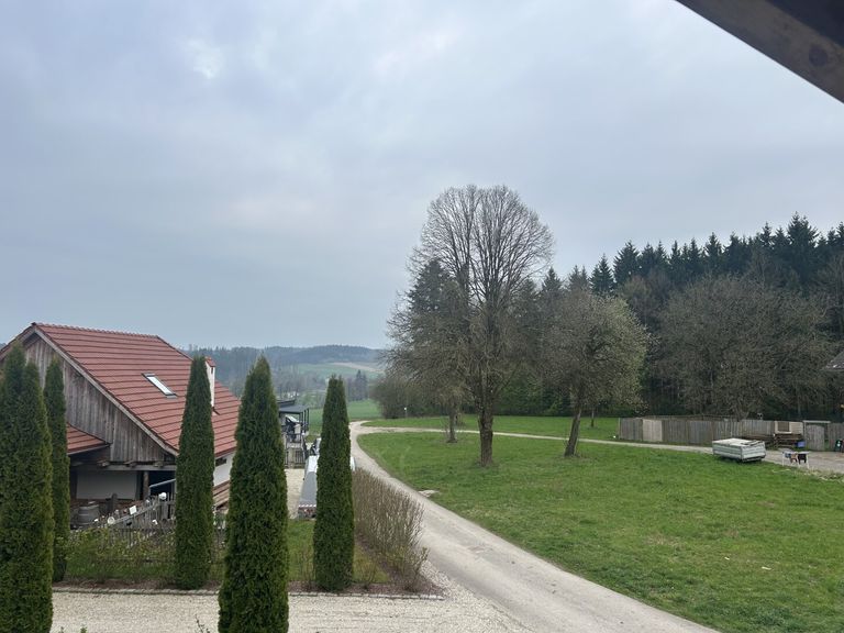 Genießen Sie die Ruhe und den traumhaften Ausblick auf die umliegenden Berge, das grüne Umland sowie die weite Fernsicht – ein wahres Highlight, das Sie jeden Tag aufs Neue begeistern wird. Der Südbalkon und die Terrasse laden zum Entspannen und Verweilen an der frischen Luft ein.
