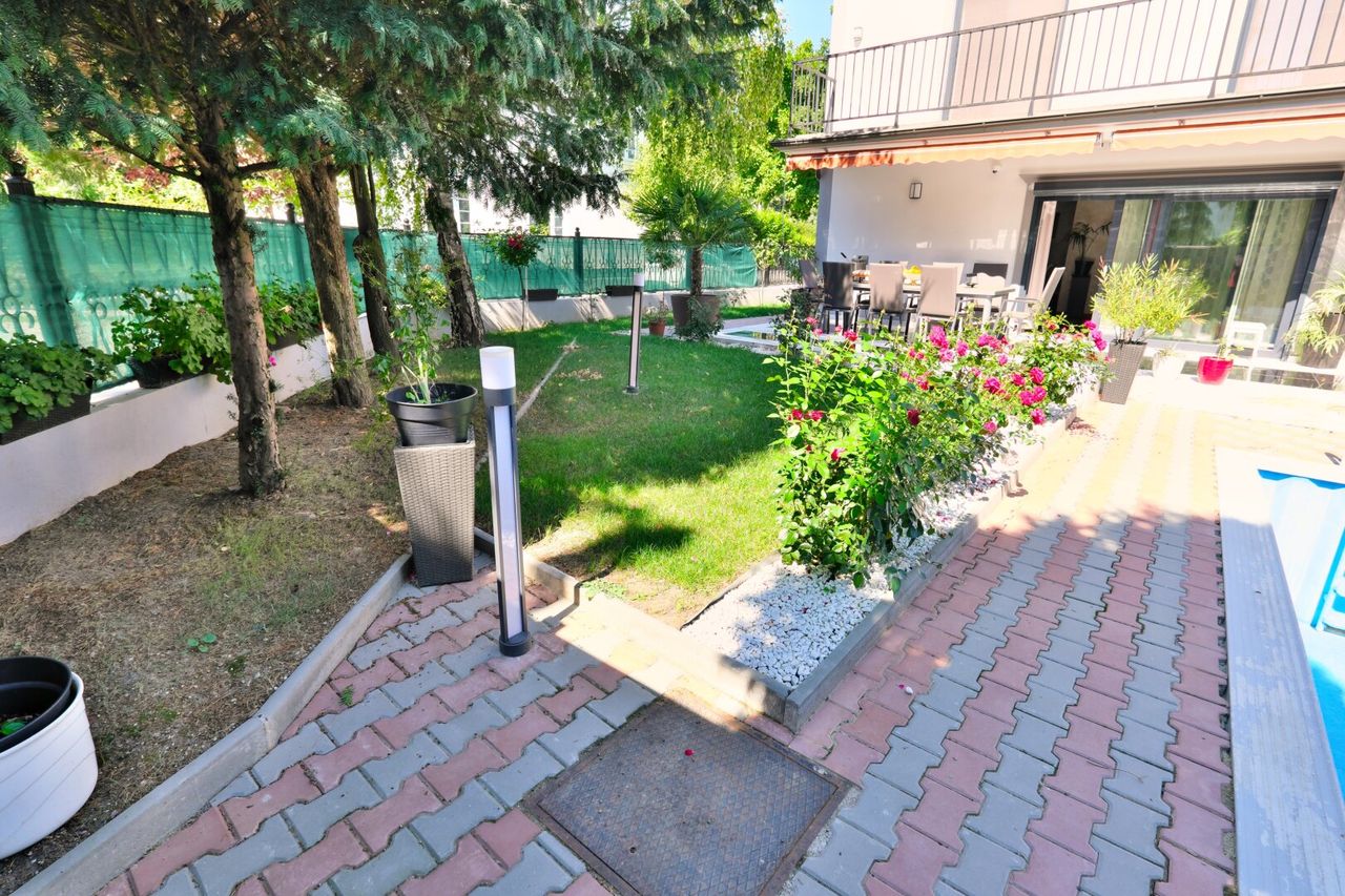 Wohnsalon und Garten nach Süden ausgerichtet.