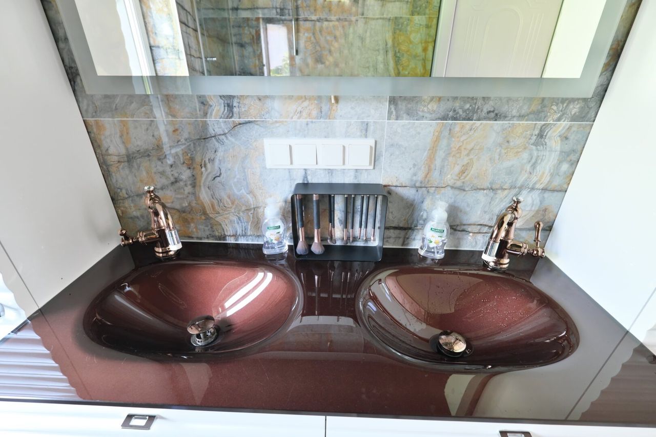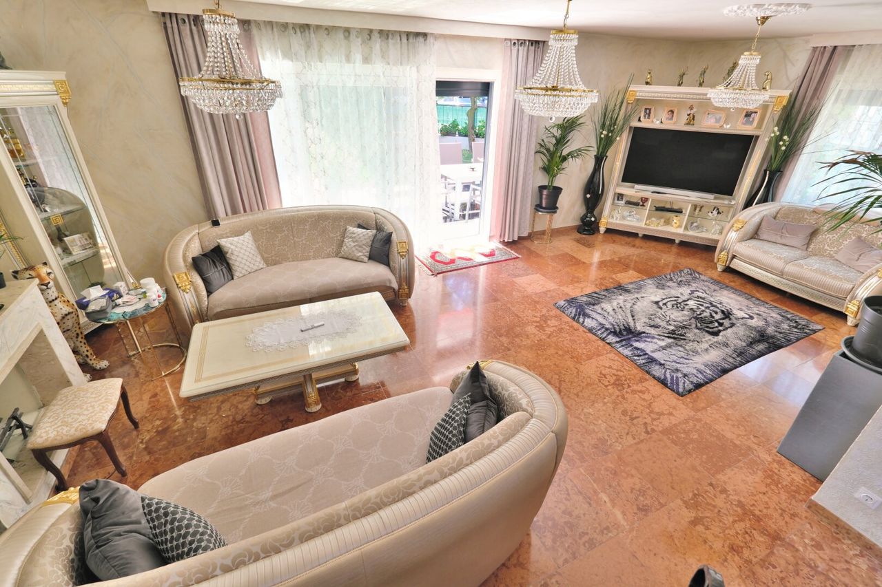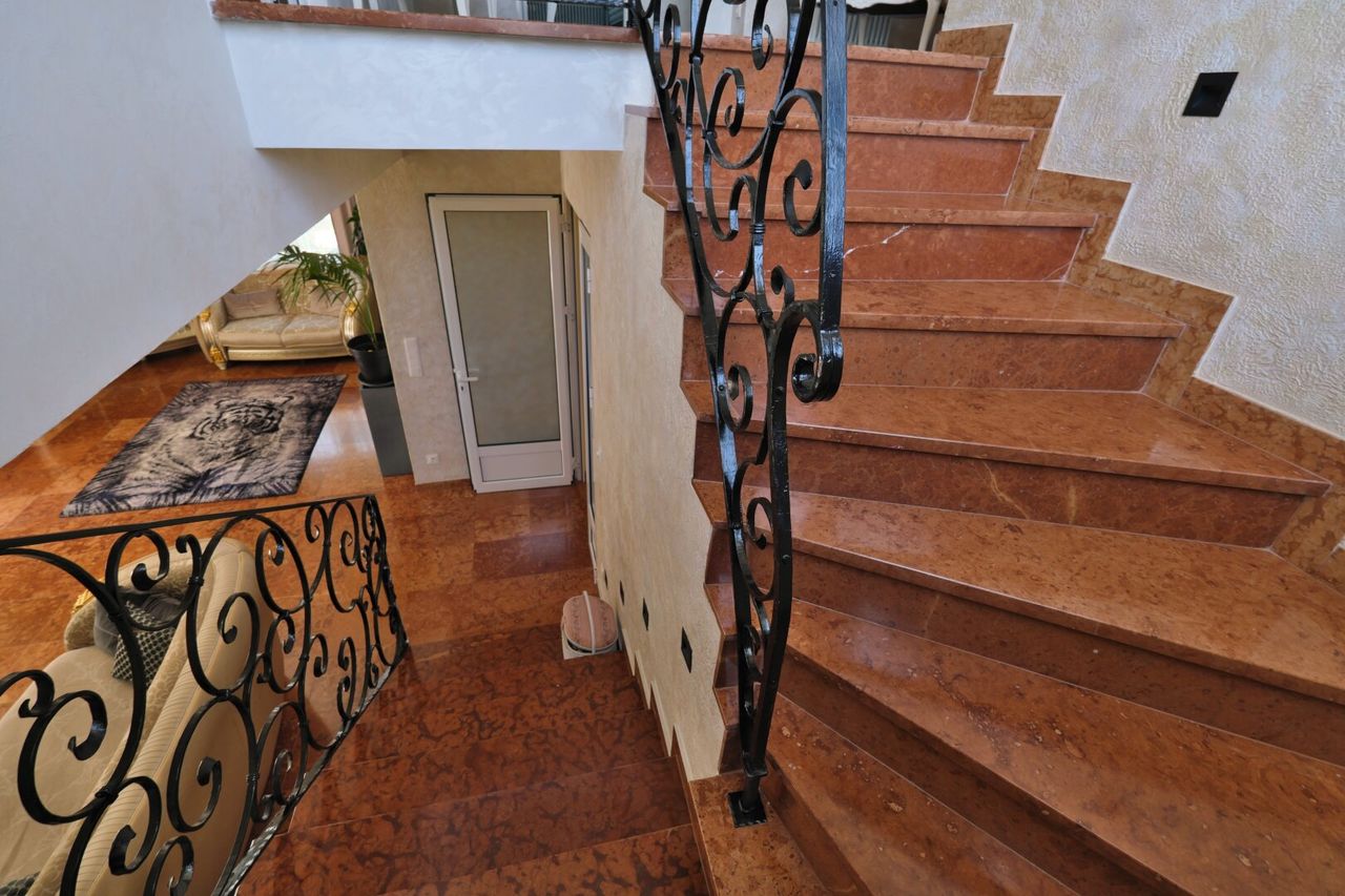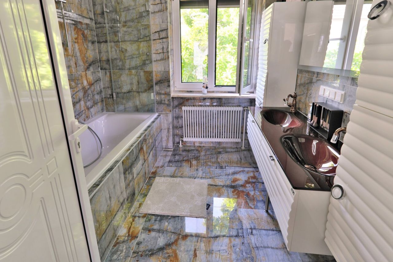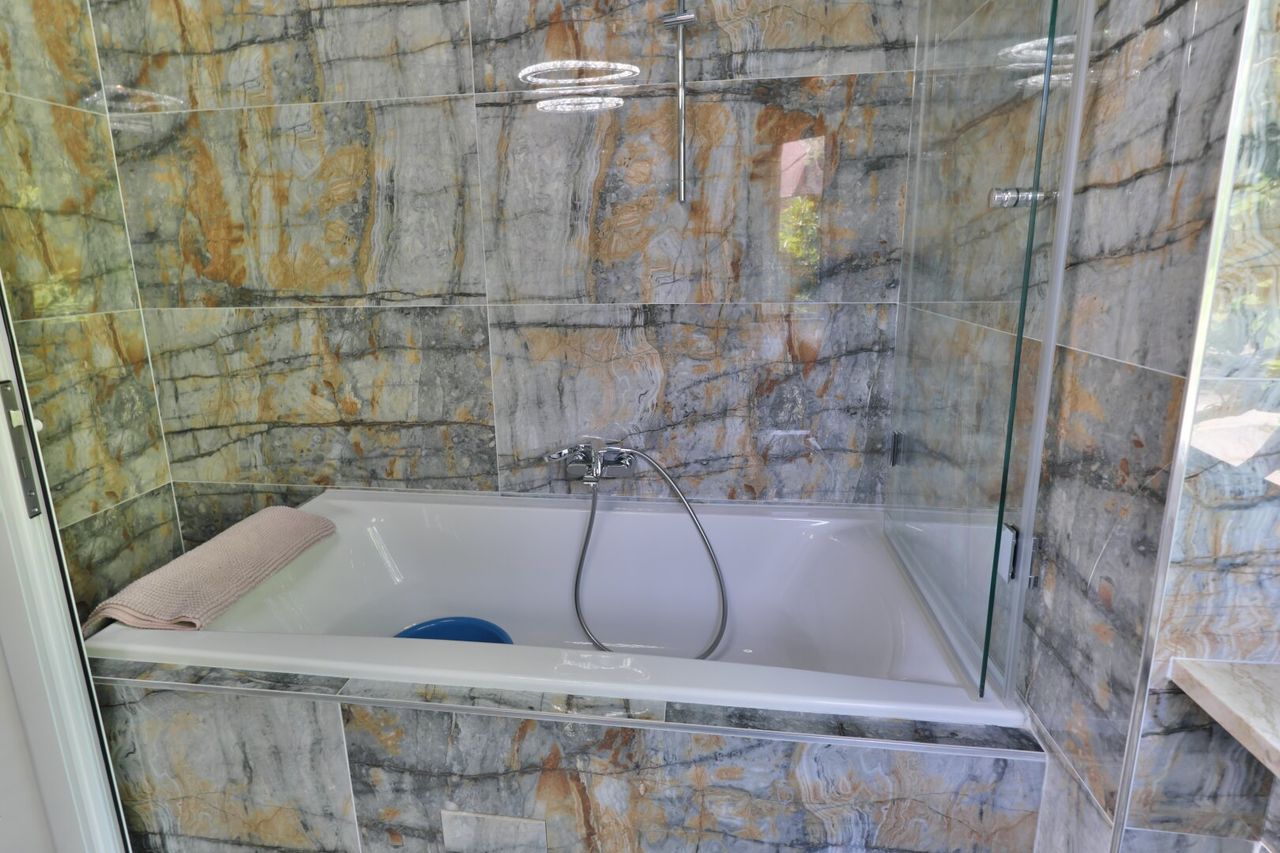 - Hochwertige Marmorböden. Marmor sogar in allen Bädern und Toiletten bis zum Plafond ausgestattet. Sogar im Waschmaschinenraum und Heiztechnikraum.