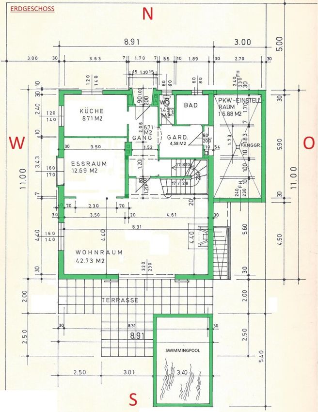 Erdgeschoß: Raumhöhe 2,70 m