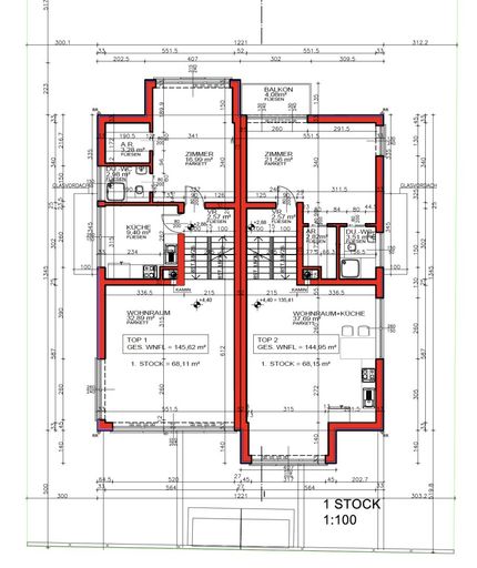 - ein 21,5 m2 großes Schlafzimmer mit 4 m2 großen Balkon