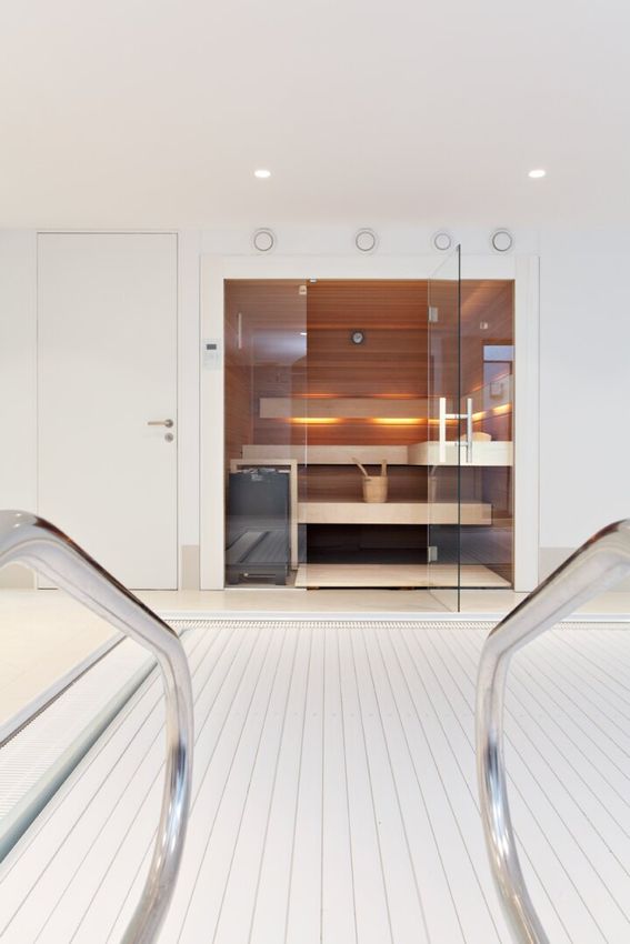 Der Wohnkeller bietet ein großzügiges Indoor-Pool, ausgestattet mit modernster Technik (Gegenstromanlage, Überlaufbecken, das für die Selbstreinigung des Wassers sorgt) sowie eine Sauna mit Dusch- und Toilettenanlage und einem kleinen Atrium. Ein Wäscheabwurfschacht bringt aus den Wohn- und Schlafräumen die Wäsche bequem in den ebenfalls im Keller befindlichen Wirtschaftsraum, der mit Anschlüssen für Waschmaschine und Trockengerät ausgestattet ist. Ein Heiz- und Technikraum (Erdwärme-Anlage), ein wandhoher Weinkühler, ein großer Wandtresor sowie diverse Abstellräume befinden sich ebenfalls in dem praktisch angelegten Keller und sorgen damit für ausreichenden Stauraum.