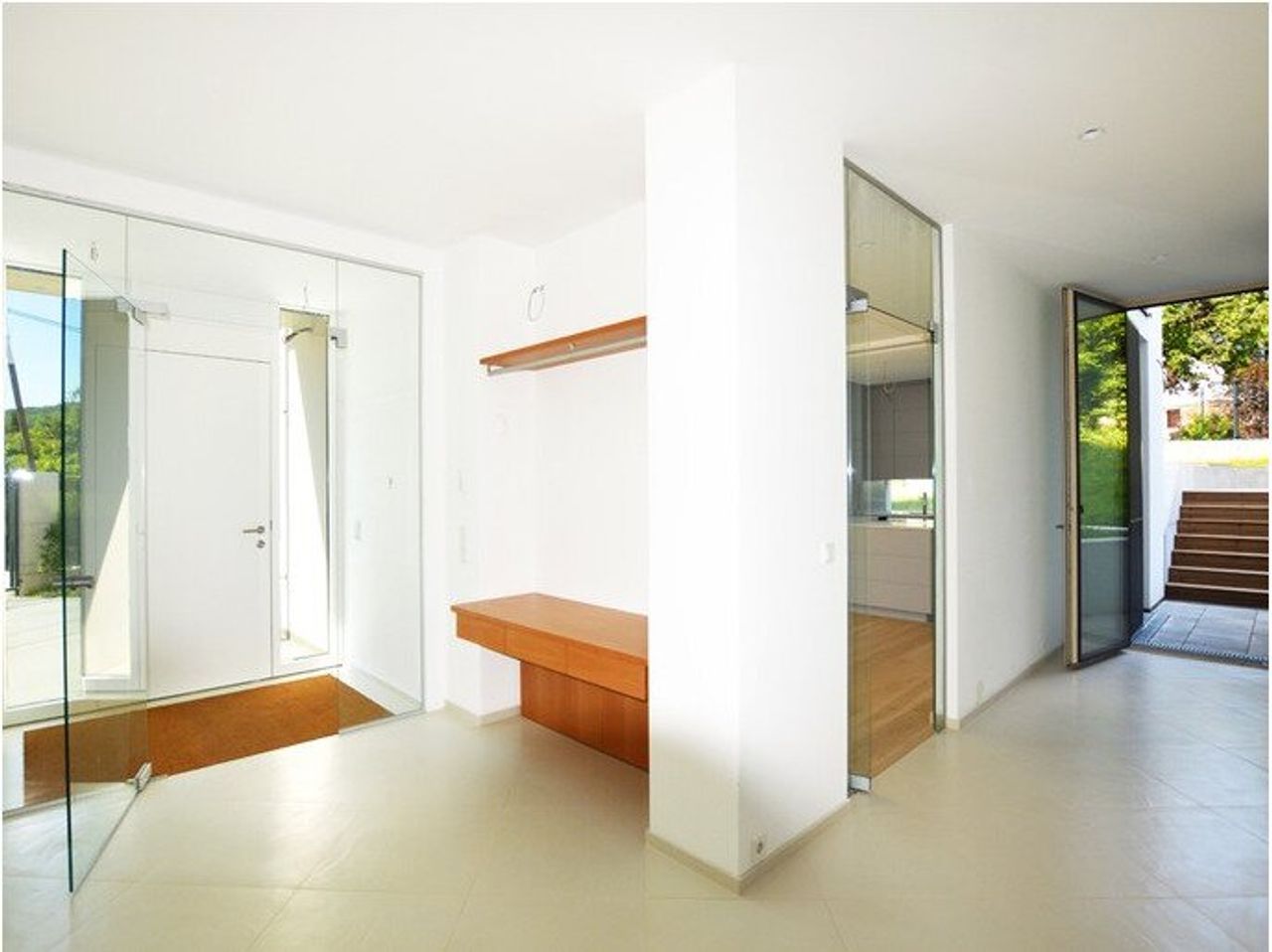 Im 1. Stockwerk befinden sich sehr großzügig angelegte, lichtdurchflutete Schlafräume mit dezent verbauten, eigens beleuchteten Einbauschränken. Jedes der 3 Schlafzimmer hat ein Bad-en-Suite (das Masterbadezimmer mit freistehender Badewanne und Blick in den angrenzenden Wienerwald), bietet einen großen Komfort und geht auf die individuellen Bedürfnisse aller Familienmitglieder ein. Auch hier wurden wieder extravagante, modern architektonische Lösungen für die Badezimmer-Ausstattung gewählt.