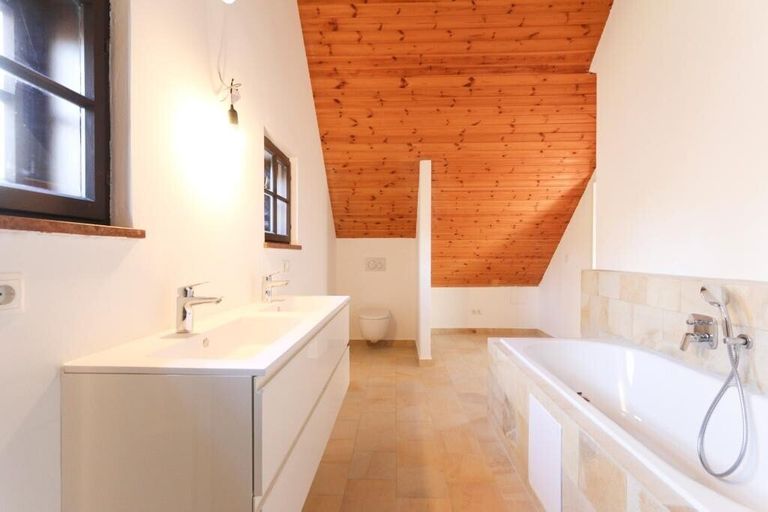 The two houses are connected via a newly constructed garden-level living space, offering a range of possible uses – ideal for additional living quarters, guest accommodation, or wellness and spa purposes.
