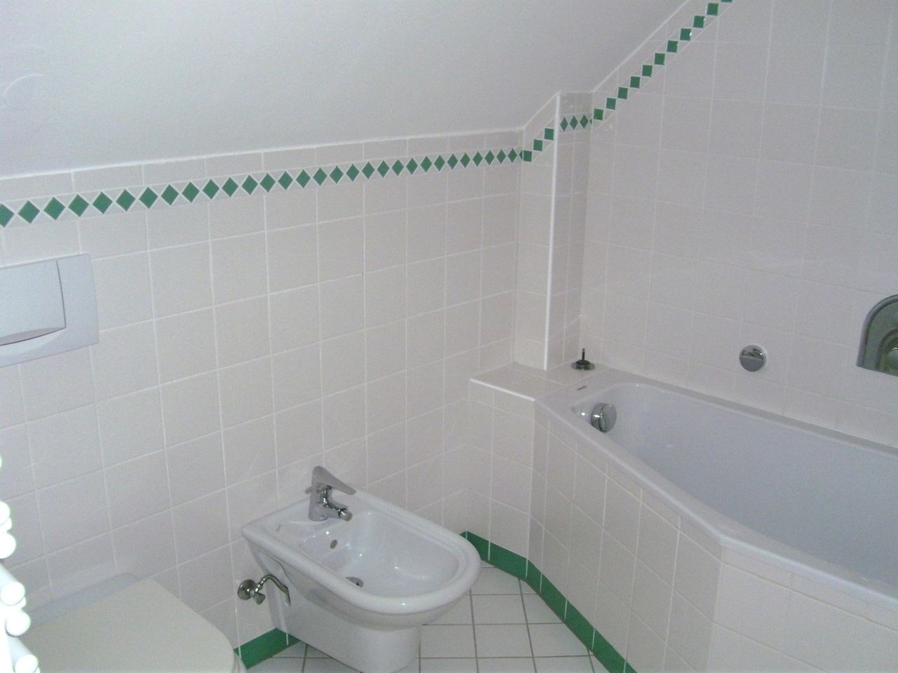 Schlafzimmer, Badezimmer mit Badewanne, Waschtisch, Bidet und WC, separates WC,