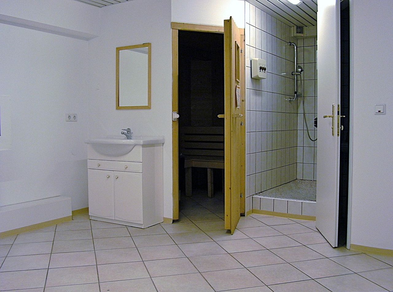 Keller: Vorraum, Dampfbad, Sauna, Dusche, Ruheraum, WC