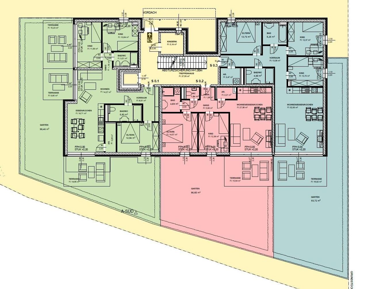 Die hier angebotene WOHNUNG S 0.1 (Haus Süd, EG, Top 1) bietet eine Wohnfläche von ca.92m², dazu Terrassen mit ca.40m² sowie einen Garten mit ca.98m², zusätzlich ein Kellerabteil.