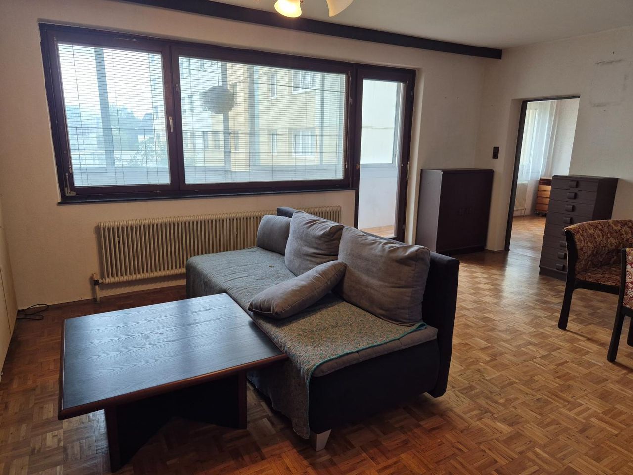 Die Wohnung verfügt über ca. 104 m² (ohne Loggia) und ist eingeteilt in einen Vorraum, ein Wohnzimmer mit Essbereich und großer Fensterfront - mit Zugang auf die ostseitige Loggia, eine separate Küche möbliert mit Fenster, 3 Schlafzimmer, ein Bad mit Dusche und Waschmaschinenanschluss, ein WC extra, sowie eine Speis.