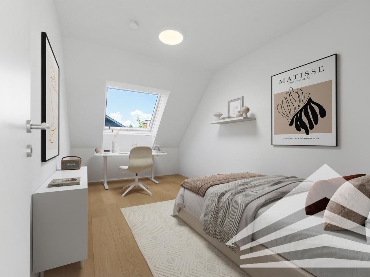 Für ein besseres räumliches Verständnis können einzelne Bilder digital möbliert worden sein und zeigen beispielhafte Einrichtungsvorschläge. Die abgebildeten Möbel sind nicht im Angebot enthalten.
