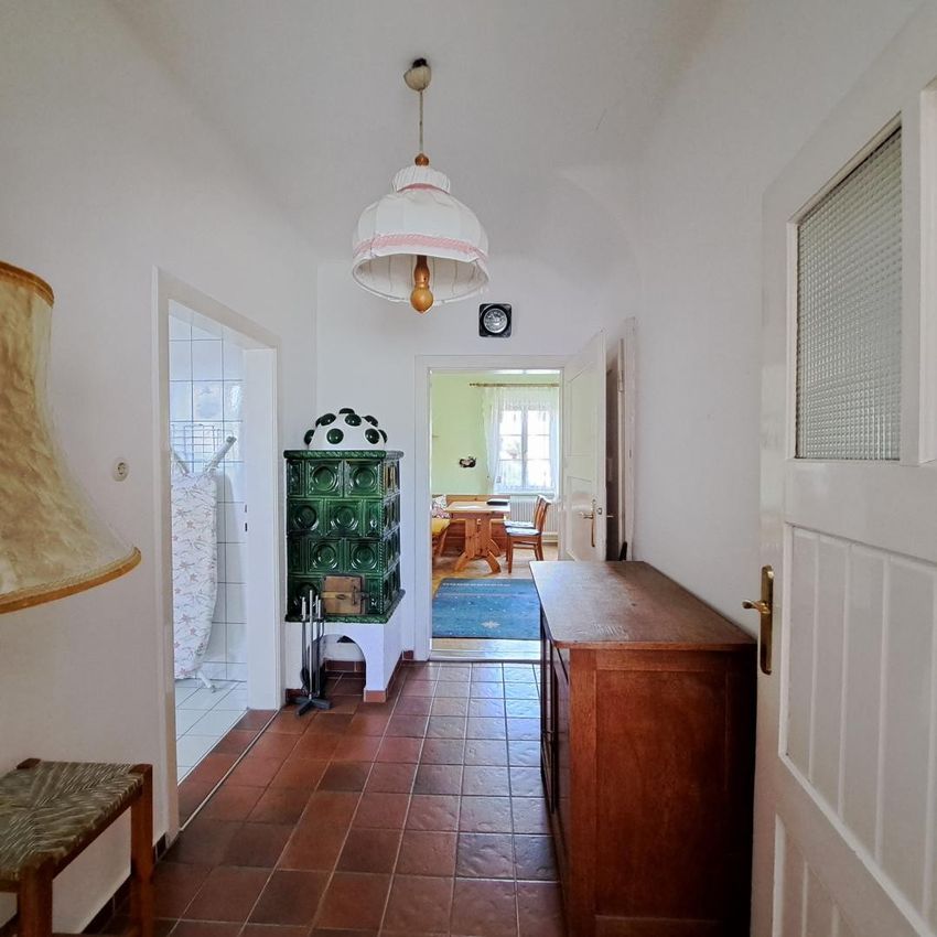 Einfamilienhaus in ruhiger Siedlungslage! Die Wohnfläche dieses ca. 1929 erbauten Hauses mit ca. 131 m² teilt sich wie folgt auf: Im Erdgeschoß betreten wir die Veranda, wo sich ein separates WC und ein zweiter Ausgang in den hinteren Bereich zum Kellerabgang befinden. Danach geht es in den Vorraum, wo sie einen Kachelofen zum Holzheizen haben. Im großzügigen Badezimmer (im Plan als Kabinett eingezeichnet) befindet sich eine Badewanne, Dusche, Waschmaschine- und Trockner -Anschlüsse. Anschließend betritt man die möblierte Küche mit Essbereich, wo Sie Ihren Lieben ein gutes Essen zubereiten könnten. Weiter geht es jetzt in ein derzeit als Schlafzimmer genutzte Zimmer,...