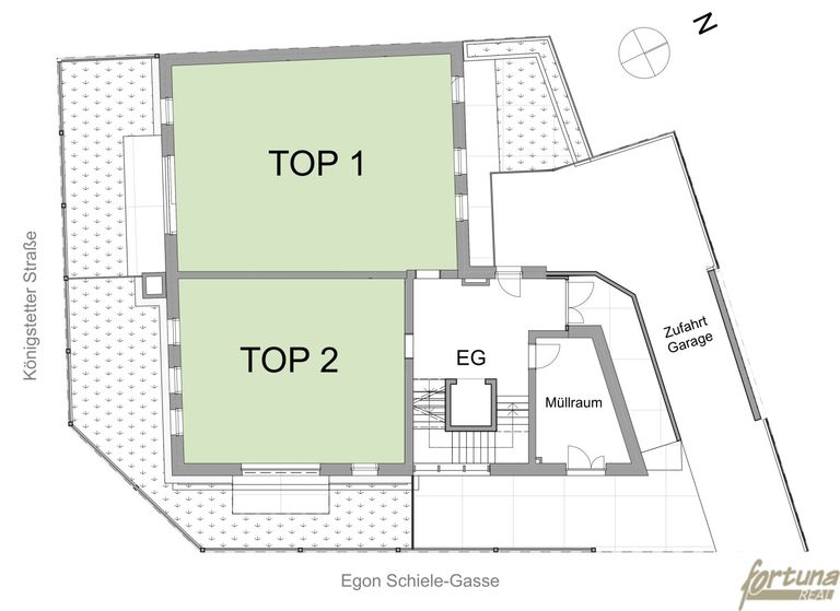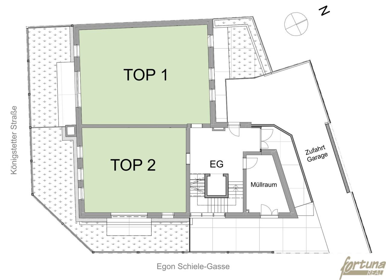 Zum Verkauf gelangt ein Wohnbauprojekt mit erteiltem Baubescheid auf einem ca. 500 m² großen Eckgrundstück in Bahnhofsnähe von Tulln an der Donau.