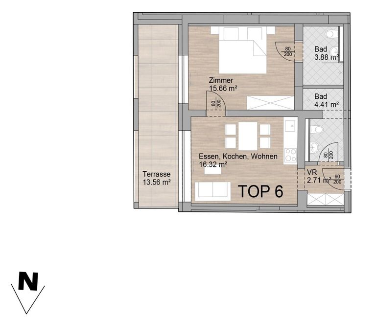 Jedes Appartement verfügt zudem über mindestens eine geräumige Terrasse mit reichlich Platz für eine Sitzgruppe.