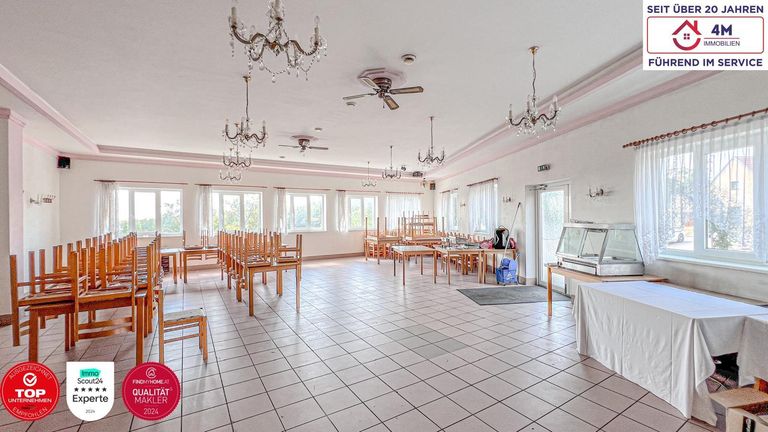 Auf einer gesamtfläche von ca. 400m², finden sich genügend Wohnraum für eine Großfamilie (7 Zimmer + Terasse und Garten), ein voll ausgestattetes Gasthaus (Saal für größere Feiern) und ein separates Gastrolokal für das Tagesgeschäft.