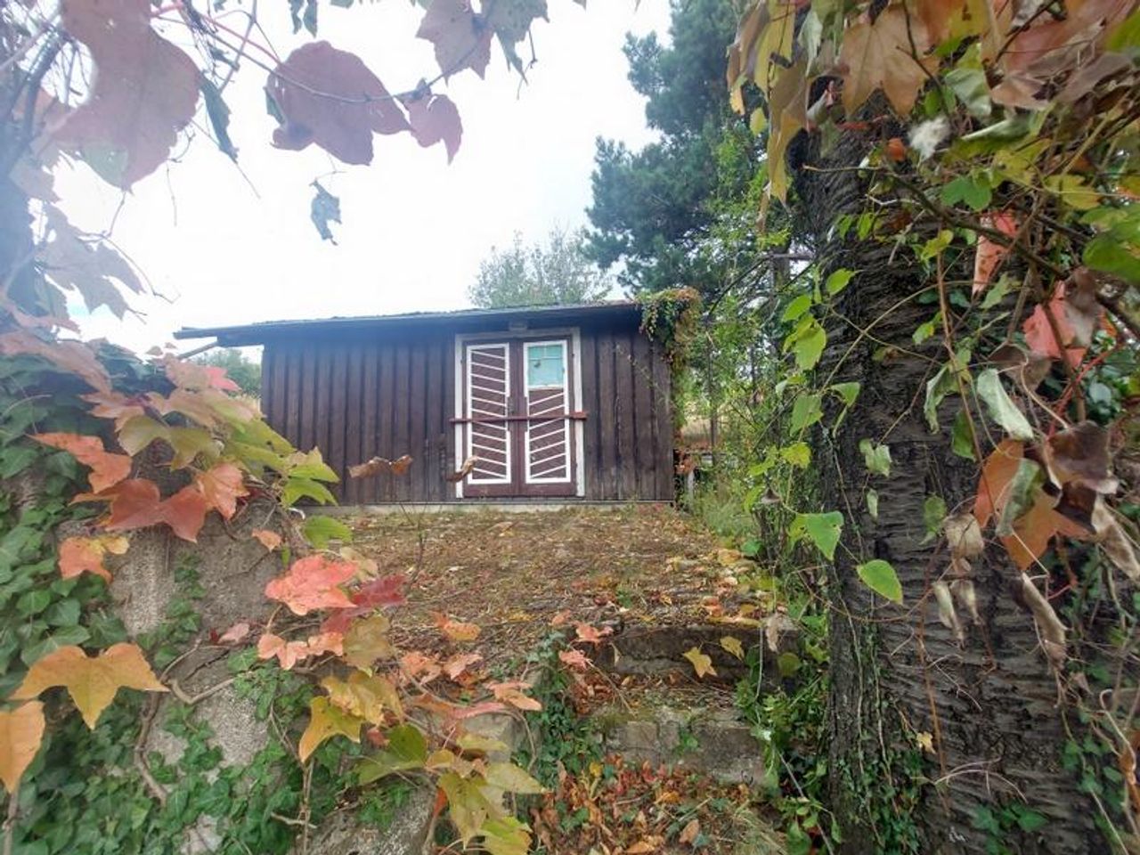 Am oberen Ende der "Stammersdorfer Kellergasse" beginnt auf der linken Seite die Senderstraße. Von hier ca. 10 Gehminuten bergauf auf der rechten Seite liegt dieses einmalige Grundstück mit der "Almhütte" Jetzt im Herbst wurde das Grundstück gerodet, damit im Frühjahr wieder alles wachsen kann. Die Widmung des Grundstücks ist lt. Flächenwidmungsplan Sww Lbb. (Grüngürtel rund um Wien) Vor vielen Jahren war hier ein Weingarten dieser wurde vom Großvater des heutigen Besitzers bewirtschaftet. Er durfte hier auch (nach dem 2. Welt-Krieg) ein Holzhaus errichten. Immer wieder wurde es renoviert und so ist es noch heute in einem relativ guten Zustand. Inzwischen...