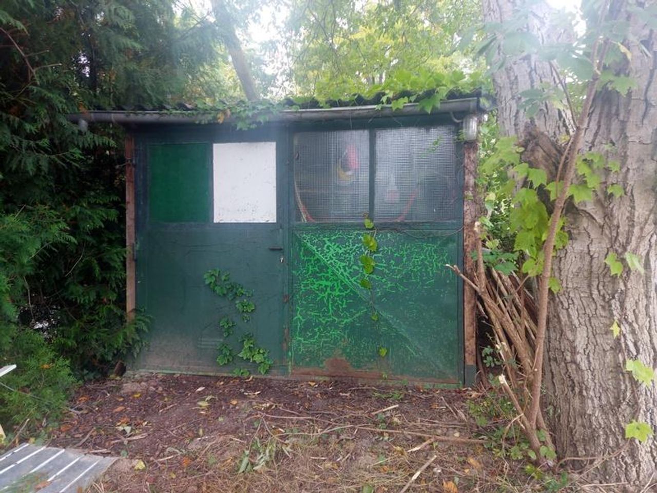 Auf der Straßenseite des Grundstücks steht ein Holzschuppen (mit Stromanschluss) zur Unterbringung von Gartengräten und Werkzeug.