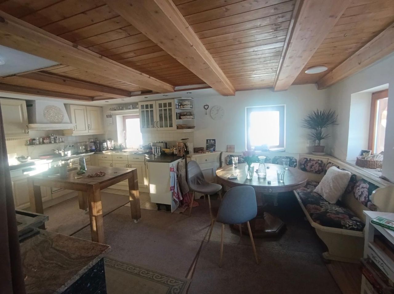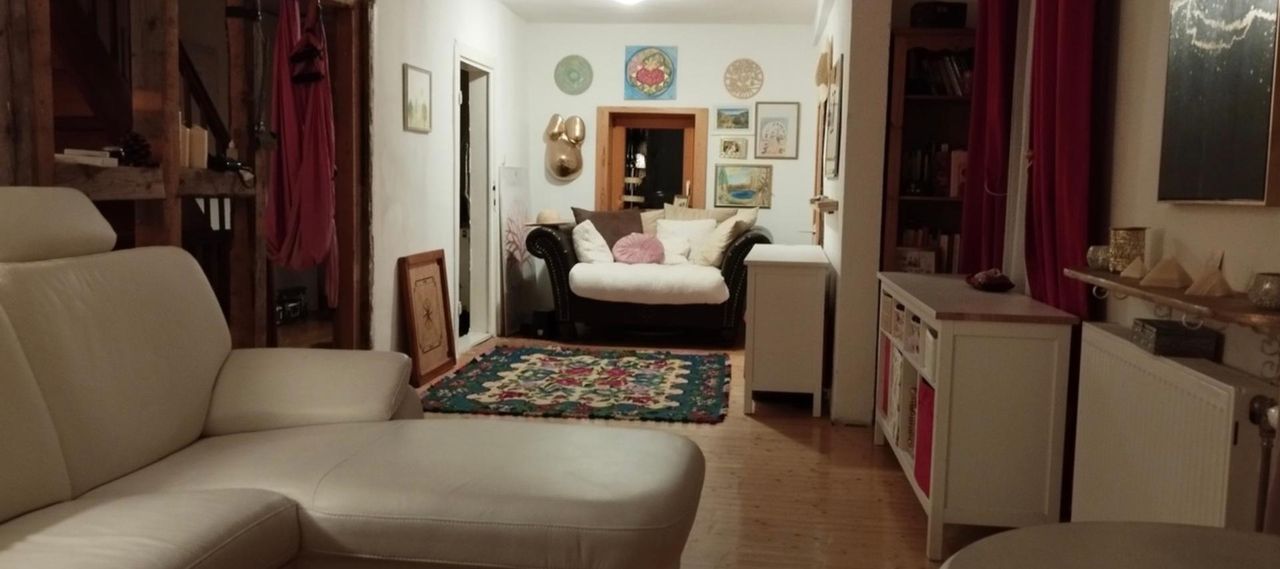 Es handelt sich um ein historisches Gebäude, das über die Jahre immer wieder erweitert und modernisiert wurde. Die besondere Qualität des Hauses liegt gerade in seiner erdigen, ursprünglichen Bausubstanz, die für ein ausgesprochen angenehmes und ausgleichendes Raumklima sorgt – perfekt für Menschen, die Wert auf Authentizität und Erdung legen.