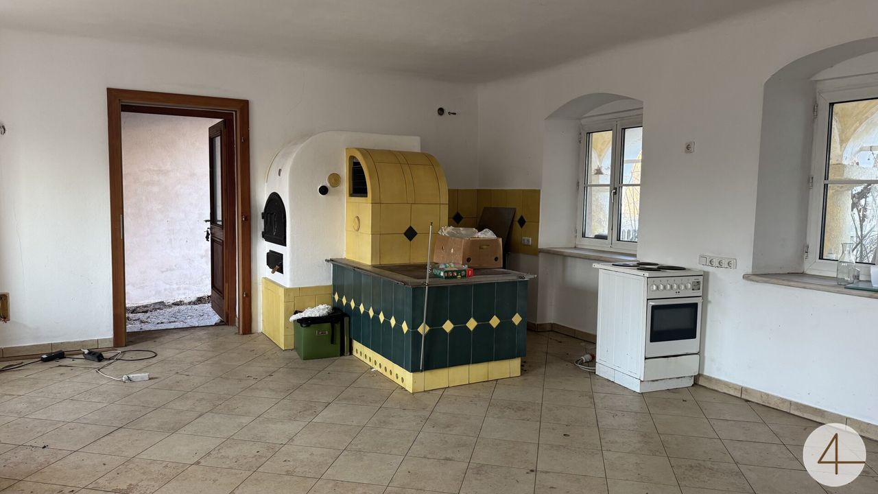 Das Hauptgebäude, sowie die Nebengebäude benötigen eine Kernsanierung. Eine große Halle gehört ebenfalls zur Ausstattung. Der Hof hat sowohl auf der Vorder- als auch auf der Rückseite eine Einfahrt.