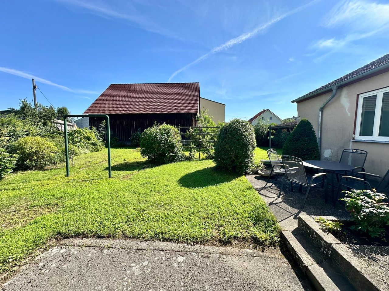 Der Garten lädt zum Verweilen und Entspannen ein und bietet ausreichend Platz für Outdoor-Aktivitäten.