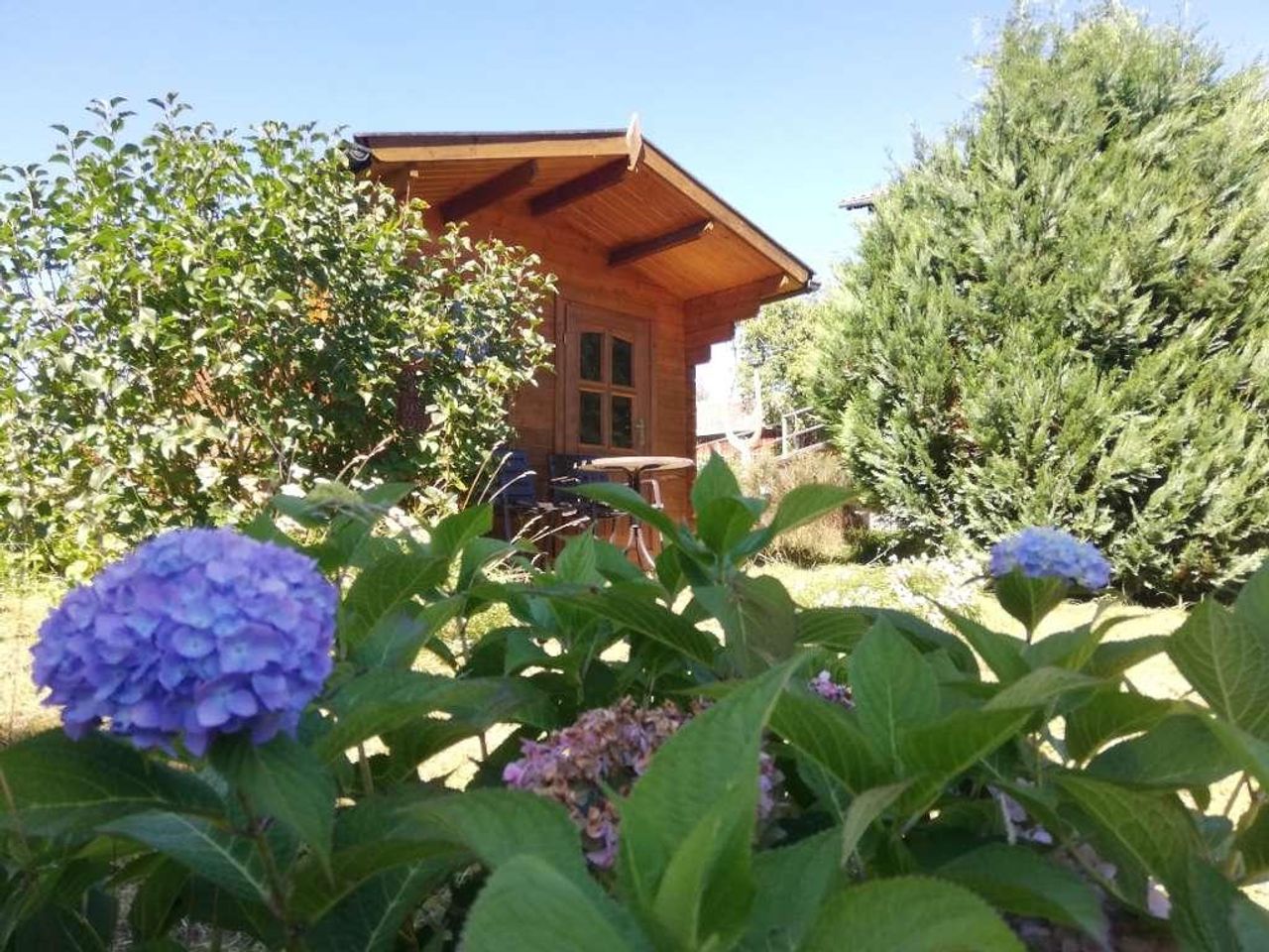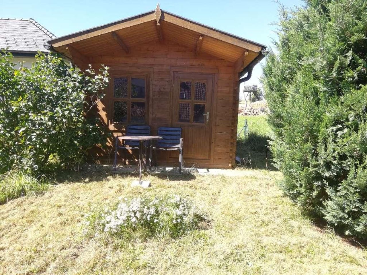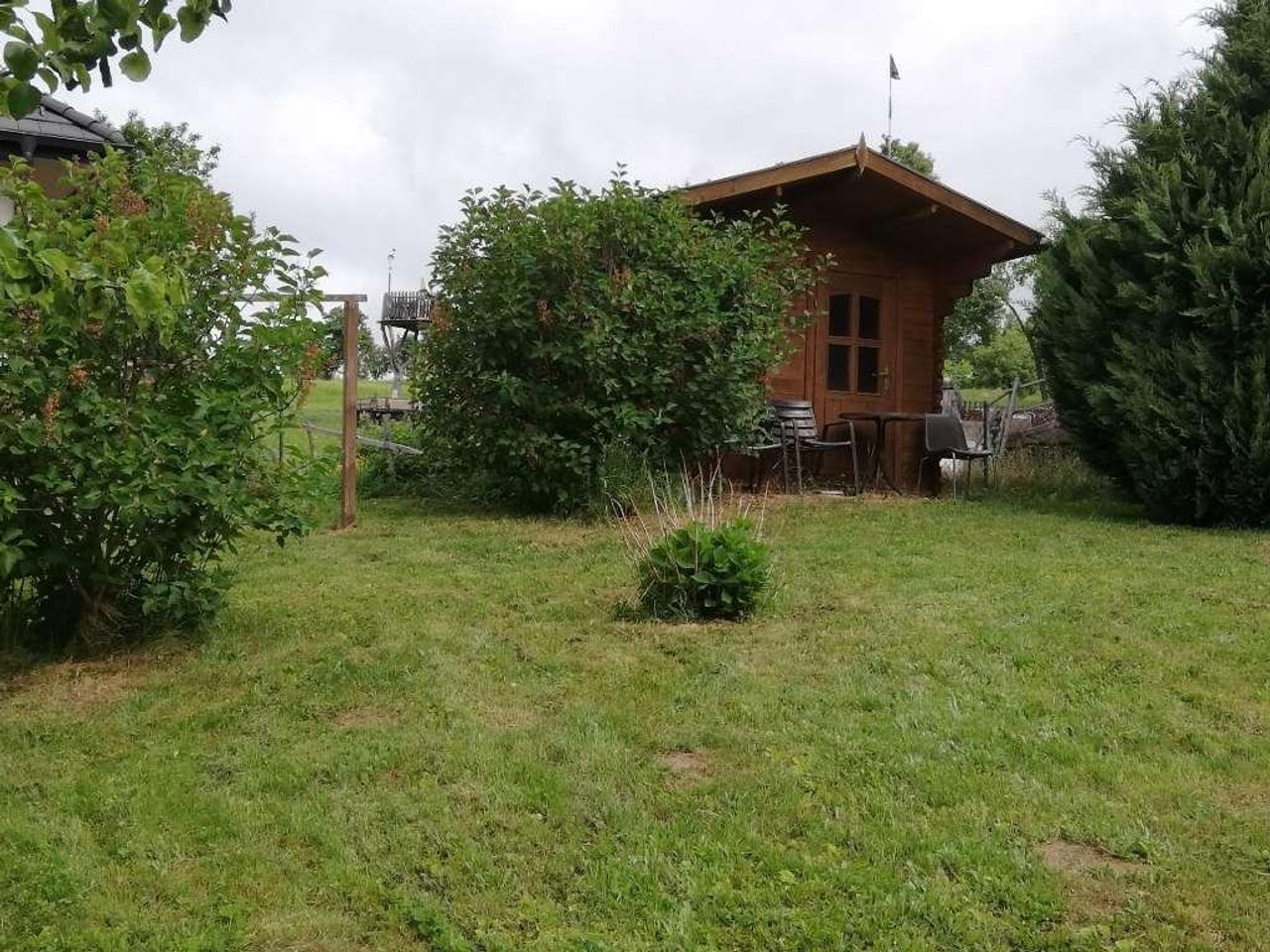 großer Garten mit Gartenhütte