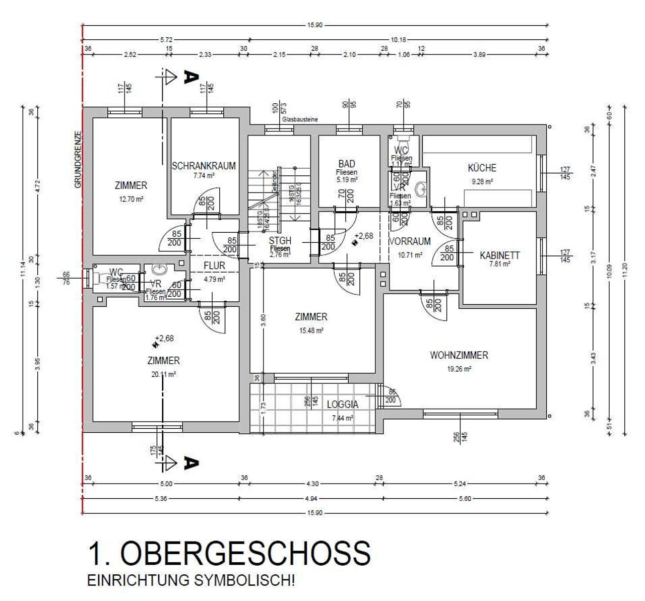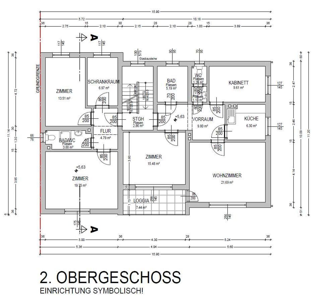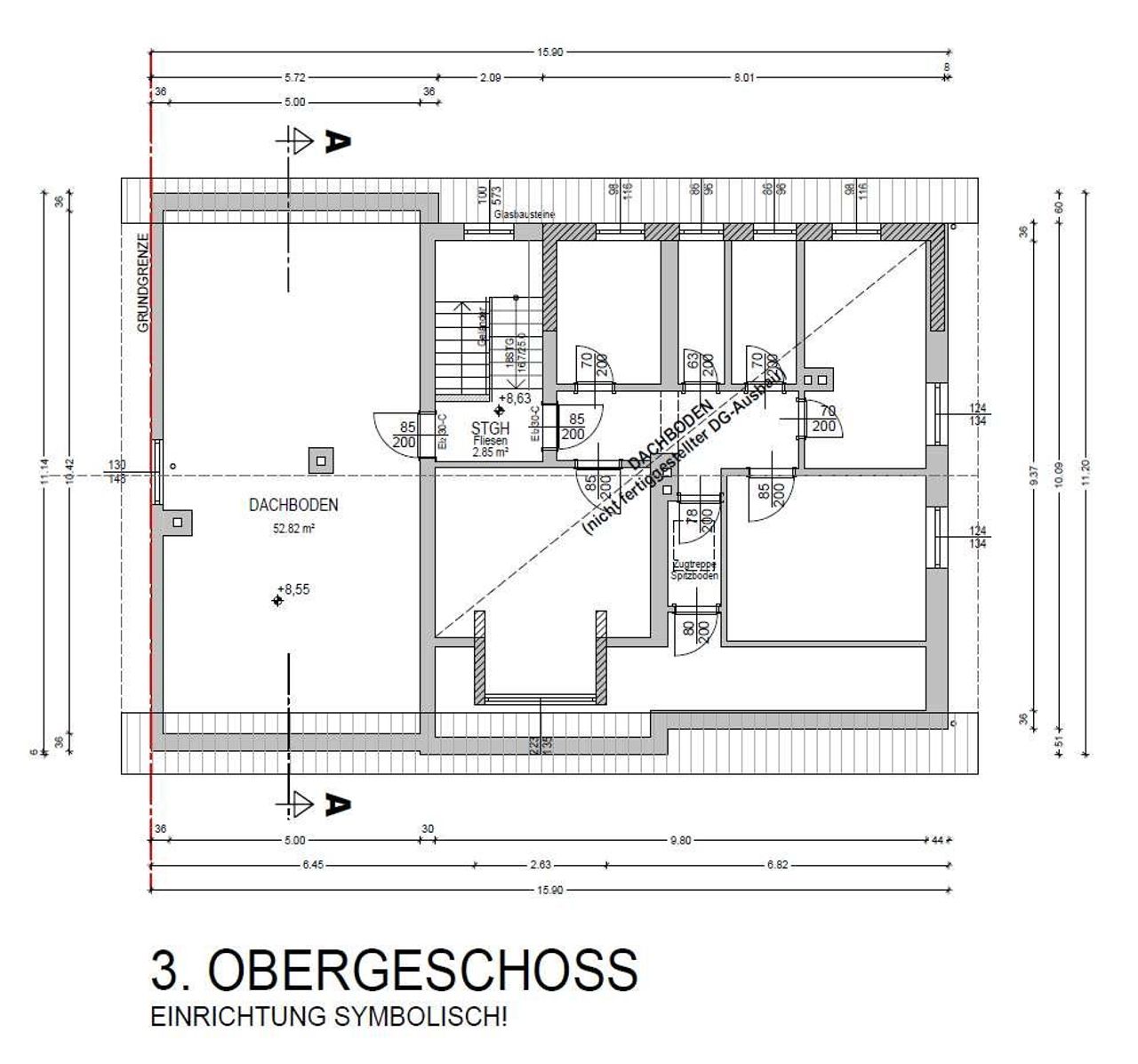 3.tes Geschoss teilweise ausgebaut;