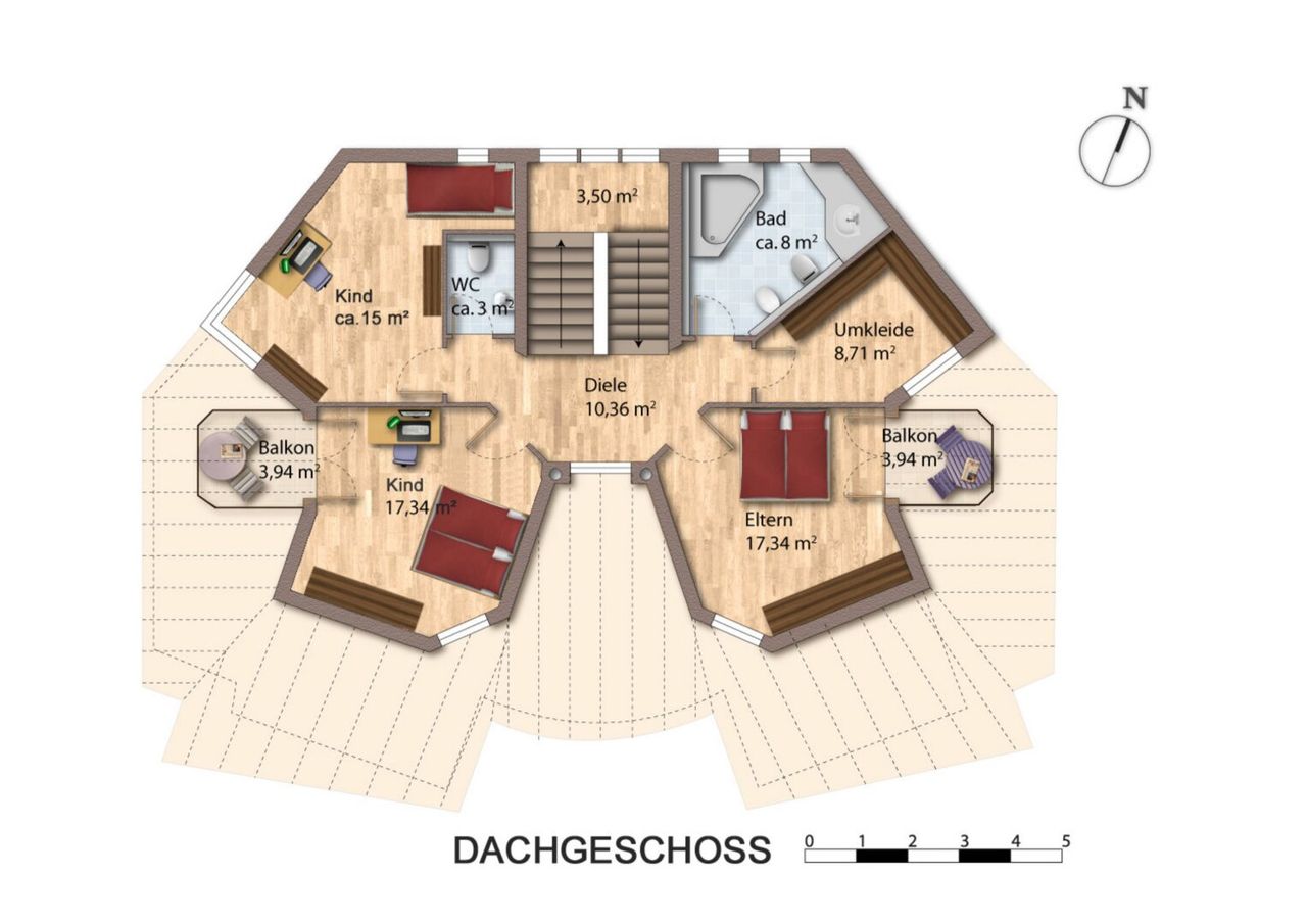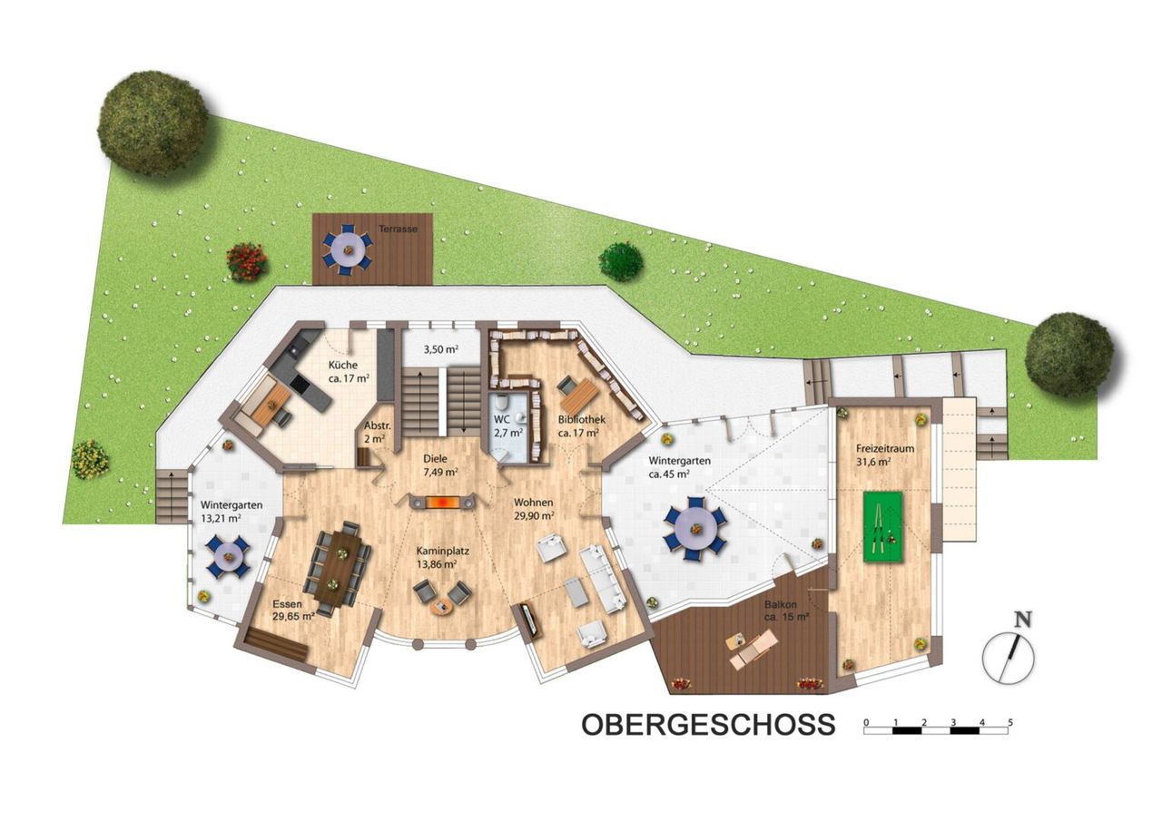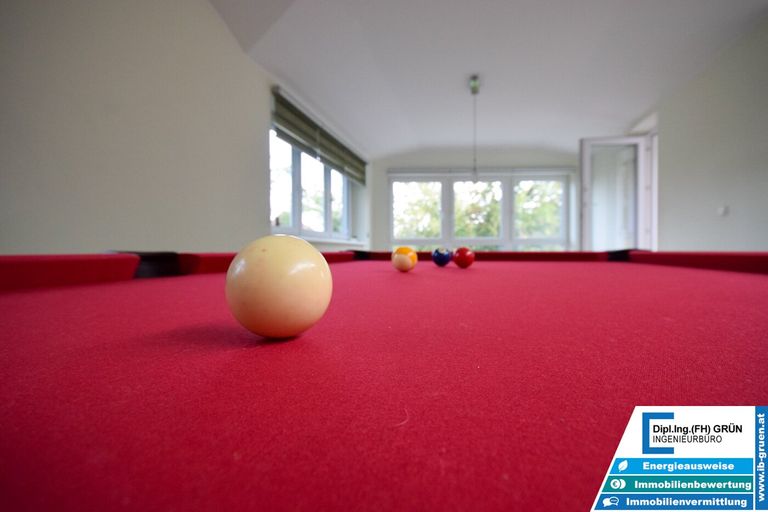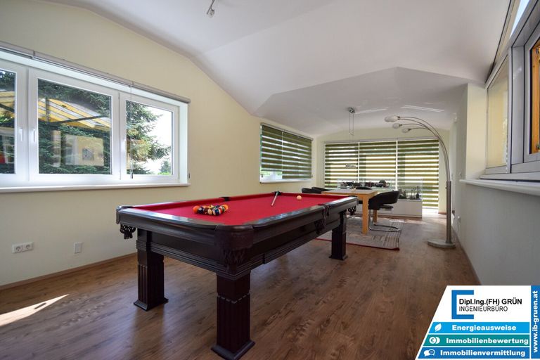 - Bibliothek & Freizeitraum (Billard), zusätzlich Räume im UG (derzeit als Gästezimmer genutzt)