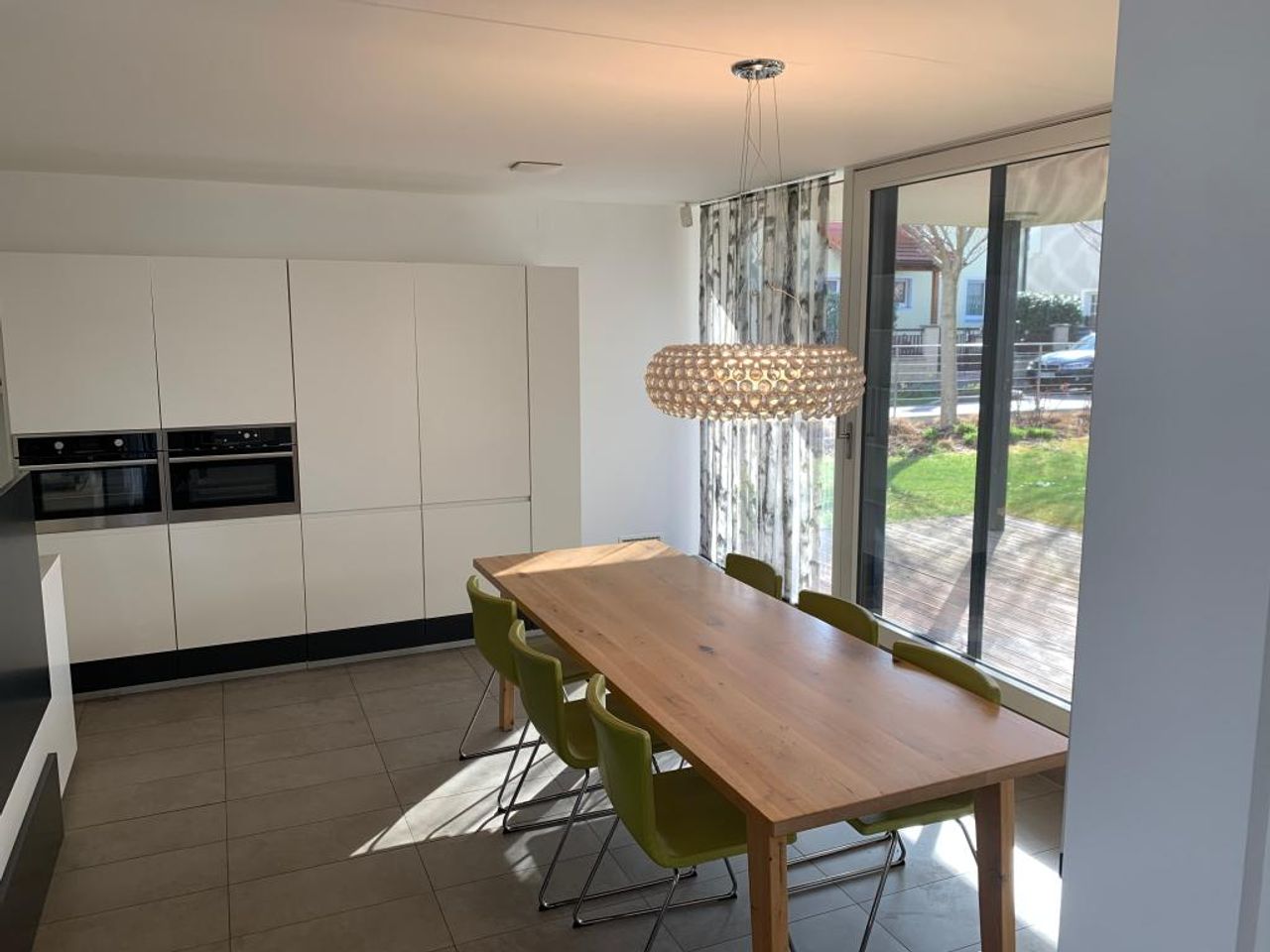 Zentrumsnah in Bisamberg vermieten wir eine wunderschöne Architektenvilla mit außergewöhnlichem Architekturkonzept und hochwertiger Ausstattung in Grünruhelage. Das Einfamilienhaus verfügt auf 2 Ebenen mit rund 210 m² über insgesamt 7 Zimmer,großes Wohnzimmer mit Bibliothek, Waschküche, 3 Bäder und 3 WC. Im Untergeschoss bietet die minimalistische Designerküche mit großem Essplatz und toller Aussicht auf die Sonnenterrasse sowie in den Garten, eine angenehme Atmosphäre. Angrenzend befindet sich ein Gästezimmer/Büro, Badezimmer mit WC und ein Wirtschaftsraum mit Waschküche und Technikraum auf dieser Ebene. Die zentrale Stiege bietet als designer möbelstück auch viel Stauraum für Garderobe. Im lichtdurchfluteten Obergeschoss können Sie einen rundum Ausblick auf Bisamberg und den Kirchturm genießen.