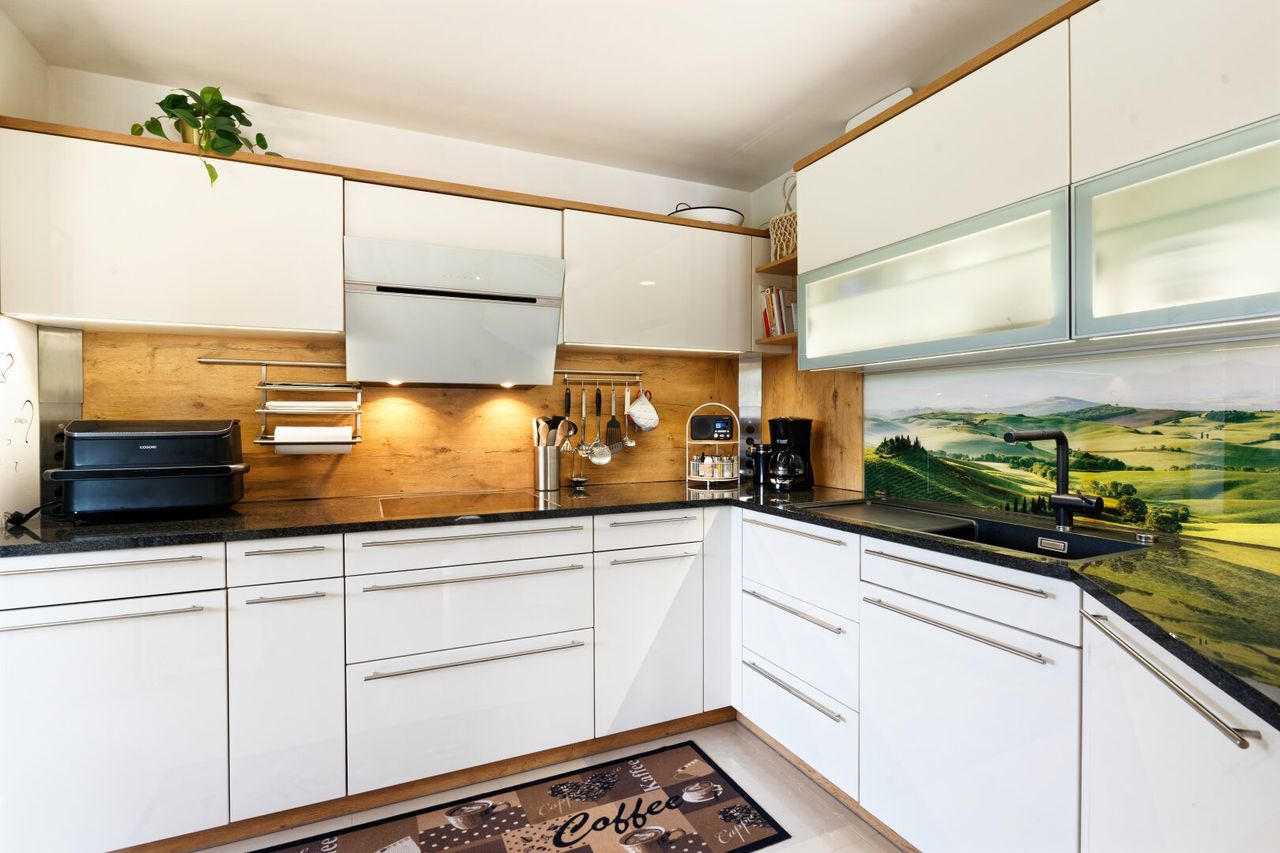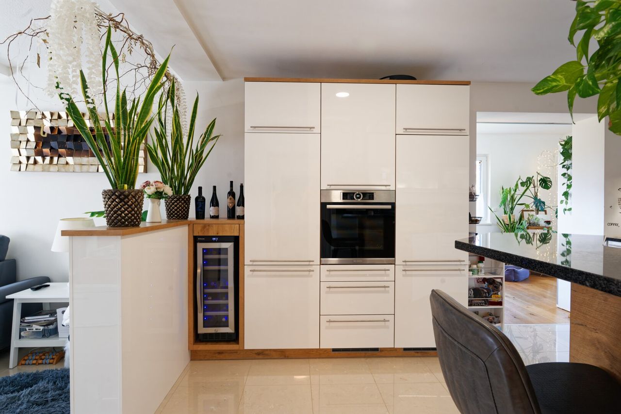 - Offene, modern ausgestattete Küche mit direkter Verbindung zum Wohnzimmer und zum Essbereich