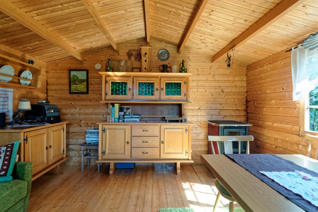 Das massiv errichtete Nebengebäude eignet sich ideal als Werkstatt und bietet zusätzlich Stellfläche als Carport. Die charmante Gartenhütte (BJ 2015) ist mit einem Kaminofen (5 kW) ausgestattet, der als Tischherd auch eine Kochmöglichkeit bietet.