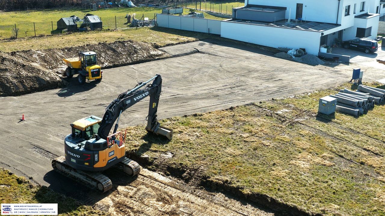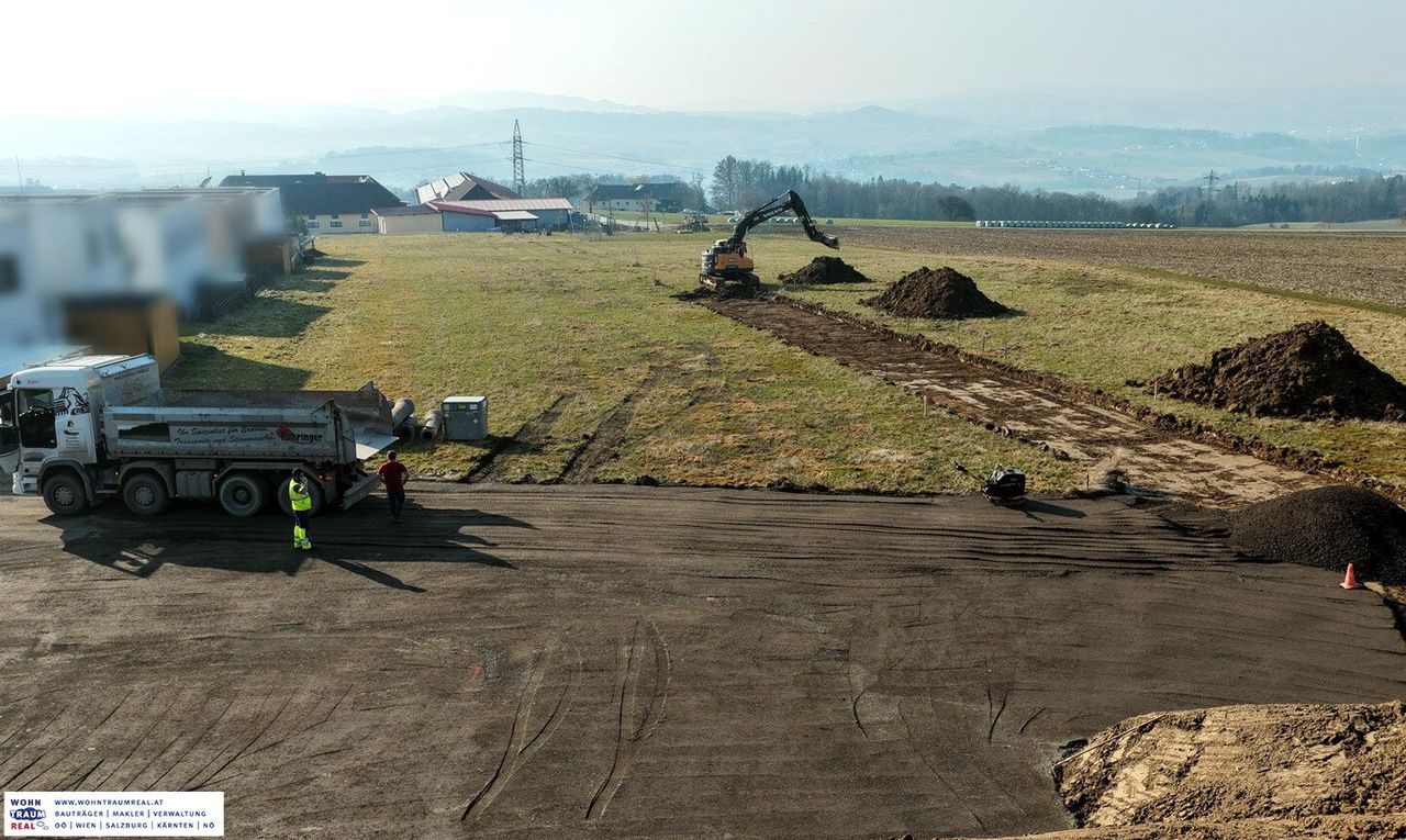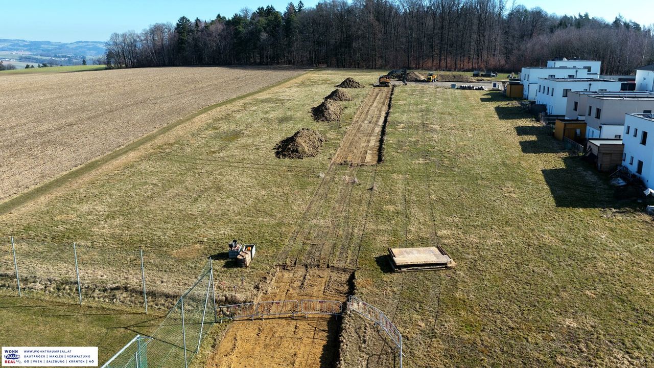 in ruhstetten bei katsdorf entsteht derzeit ein neues wohngebiet mit mehreren baugrundstücken für einfamilienhäuser.