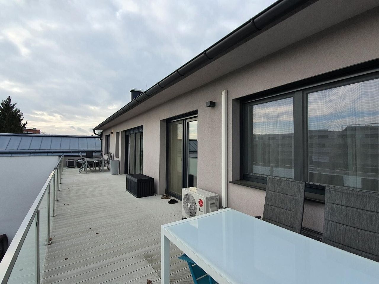 Das gegenständliche Objekt weist eine gehobene Ausstattung aus, besticht durch seine hohe Decken im DG und ist voll unterkellert (3 Zimmer plus Bad /Sauna) und bietet zusätzlich einen großen zum-Teil begrüntes Innenhof ca. 310,00m² an.