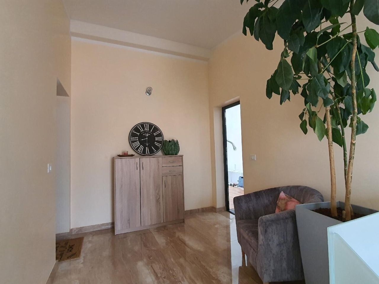 // Wohneinheit im Erdgeschoß: bis zu 3 Schlafzimmer + großzügige offener Wohnsalon mit Kamin und optisch getrennte DAN Küche in hochwertiger Ausführung, 2 moderne Bäder mit WC, Gartenausgang.
