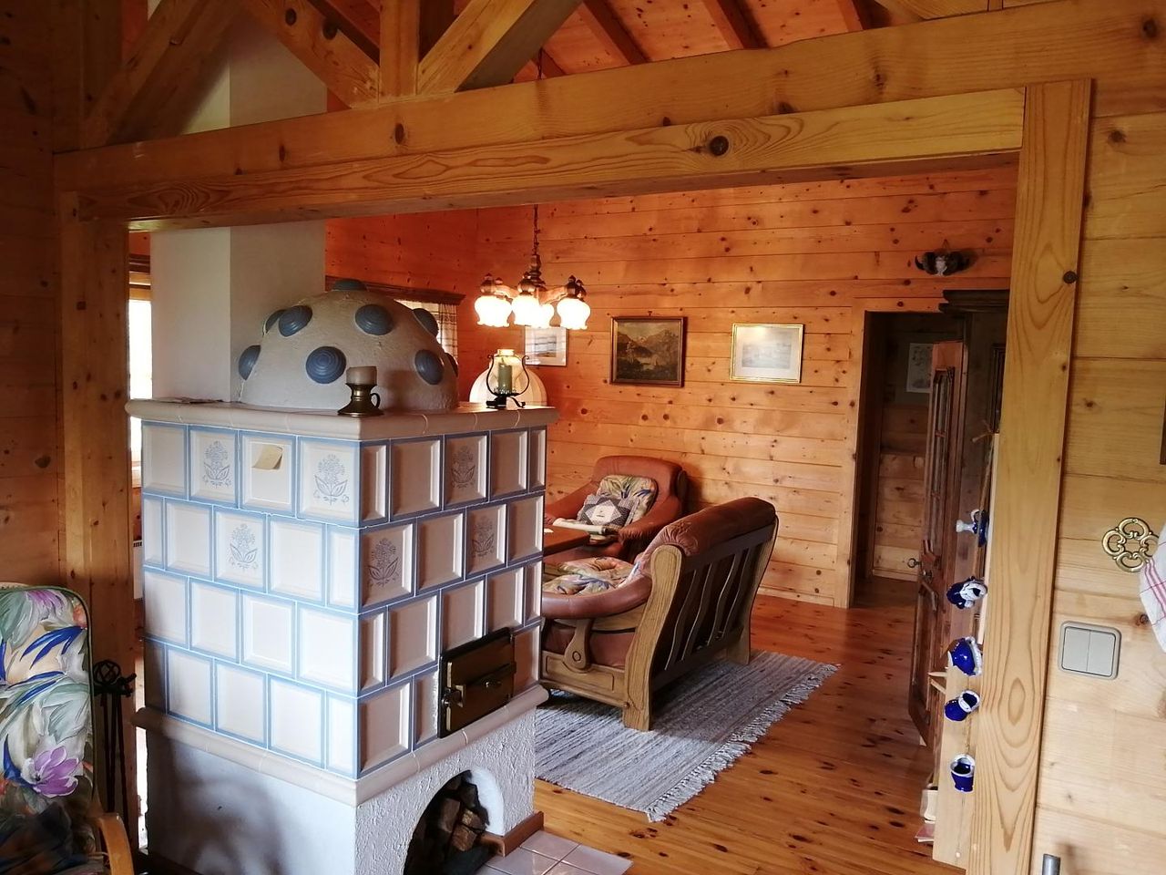 Vollholzmöbel (Vogelauer) in toller Qualität in allen Räumen, eine geräumige Küche mit Essplatz sowie das Herzstück, ein wunderschöner Kachelofen!