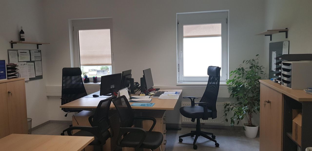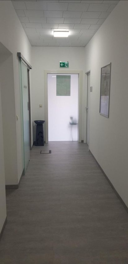 Empfangsraum, 5 große Räume, getrennte WC- Anlagen, Küche mit Sozialraum, Lager, Serverraum. Sämtliche Räume sind barrierefrei.