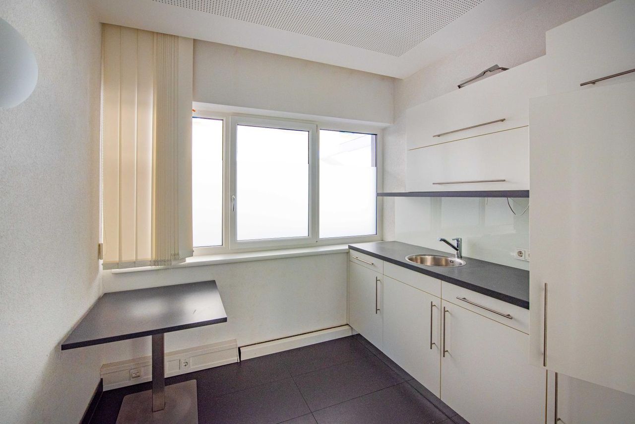 Die möblierte, neuwertige Küche bietet Platz für Pausen in angenehmer Atmosphäre, ein gepflegtes WC sorgt für zusätzlichen Komfort. Der separate Serverraum bringt die nötige technische Infrastruktur für moderne Arbeitsprozesse mit. Ein eigenes Kellerabteil schafft zusätzlichen Stauraum.