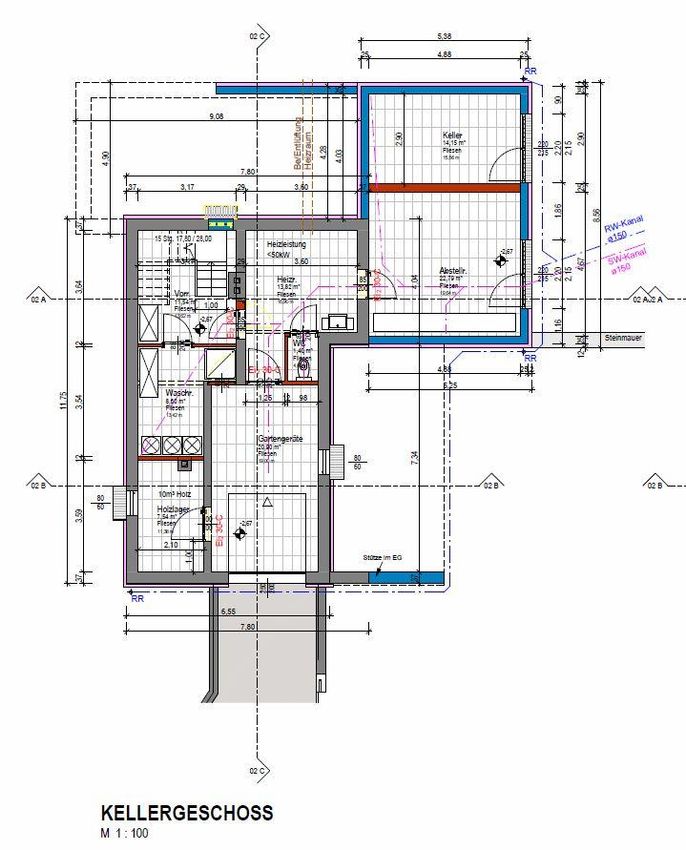 gartenseitigen ca. 28 m² großen Terrasse. Der Keller wurde mit einem Neubau um ca. 36 m² in Richtung Osten erweitert.