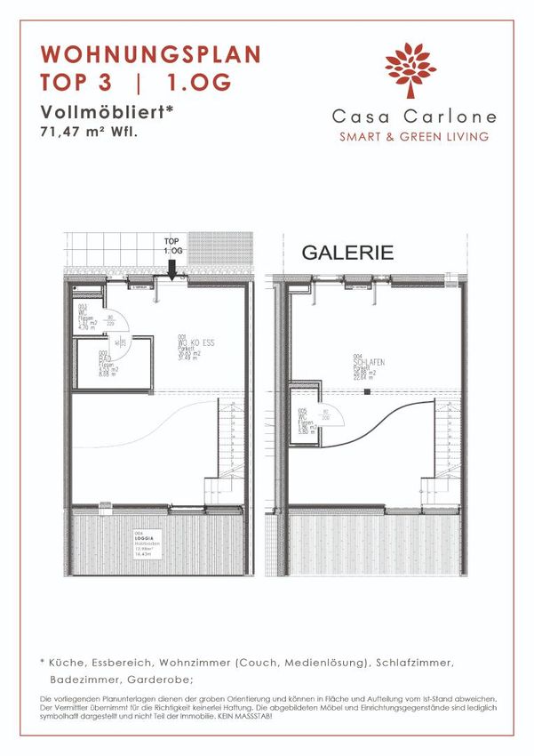Top 3 im 1. Obergeschoss mit ca. 71,47 m² Wohnfläche und ca. 12,98 m² Loggia: