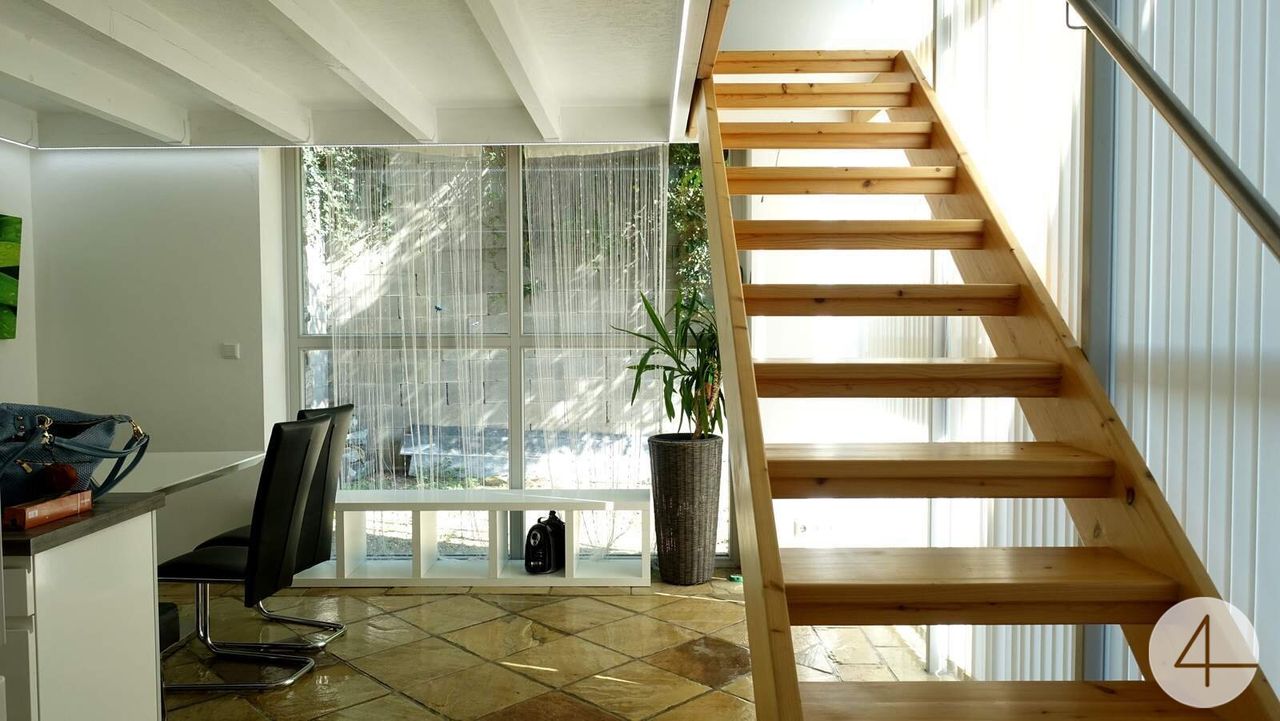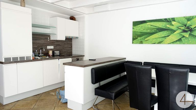 - Im Dachgeschoss bietet ein ca. 100m² Wohn-Ess-Küchenbereich mit Ausgang auf den Balkon eine herrliche Fernsicht nach Krems.