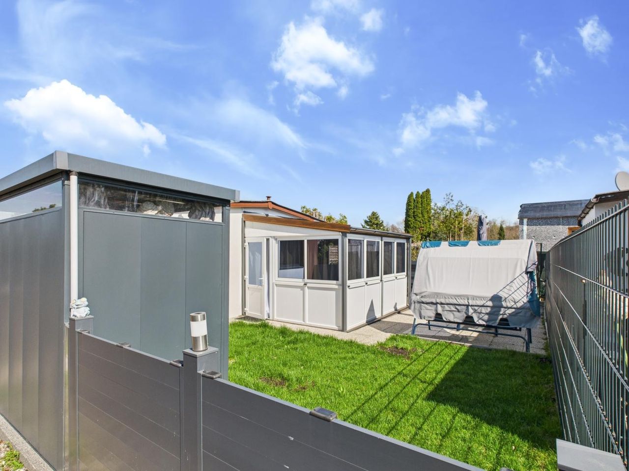 Des Weiteren befindet sich auf dem Grundstück ein neuwertiges Gerätehaus, das alle Gerätschaften und Utensilien für den Garten beherbergt.