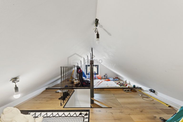 Besonderes Highlight ist das Netz in der Decke, welches sich herrlich – via einer charmanten Wendeltreppe in den Dachboden – zum spielen für die Kinder eignet.