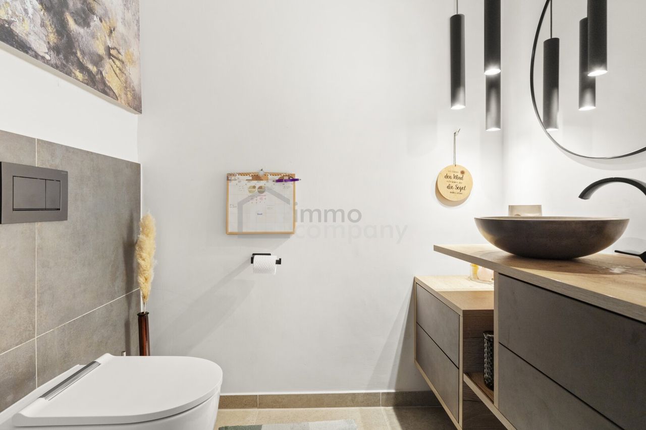 Des weiteren besticht der moderne Feinsteinzeugboden mit Fußbodenheizung sowie für wärmere Tag die Klimaanlage. Nicht zuletzt sollten auch die 3-fach Isolierverglasten Panoramafenster nicht unerwähnt bleiben.