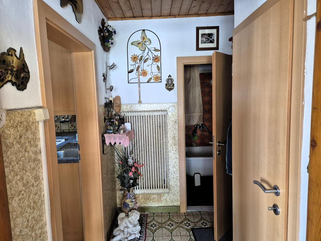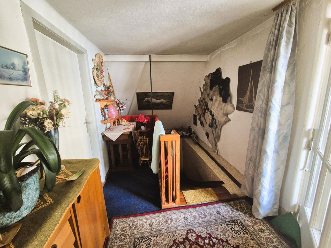 Im Erdgeschoss befindet sich ein Vorhaus, kleines Bad mit WC, Küche, Wohnzimmer und ein weiteres Zimmer.