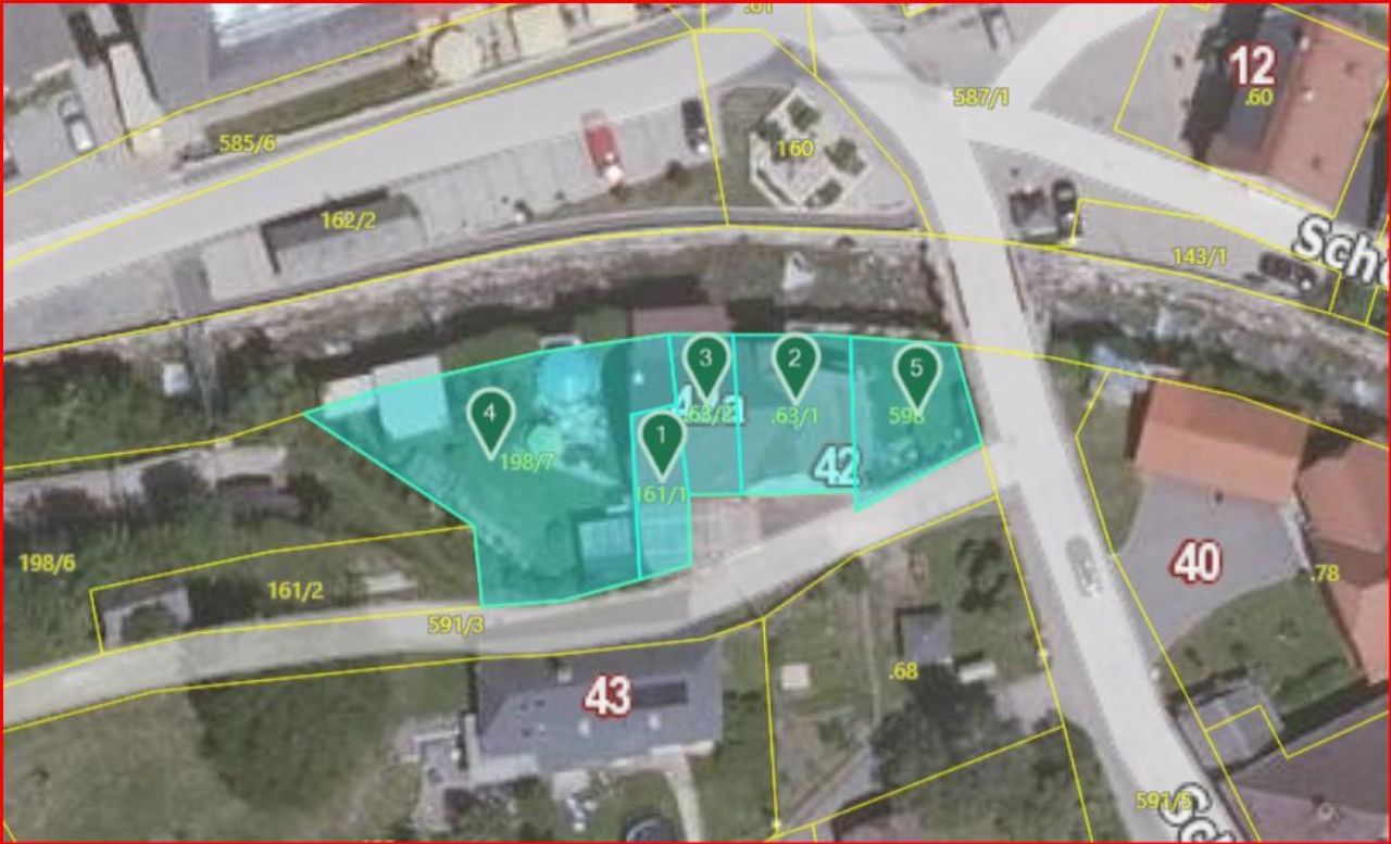 Auf dem ca. 656 m² großem Grundstück befindet sich ein Doppelhaus mit Altbau aus ca. 1963 und einem Neu-Zubau aus ca. 1983.